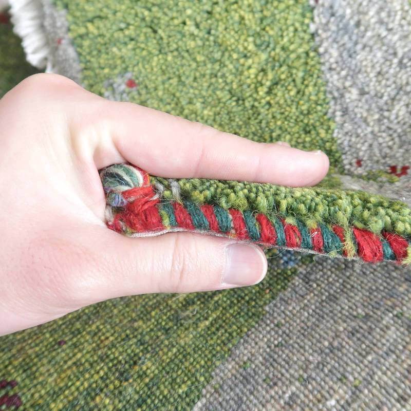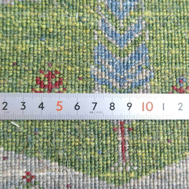 織りは、10cmあたり、およそ40から45目という普通のギャッベの数倍にもなる大変細かなルリバフ。抜け毛が少なく、手触りはふわりと柔らか。踏んだ時やんわりと沈み込む踏み心地です。腕の良い選りすぐられた織り子だけが手掛ける極上の手仕事です。