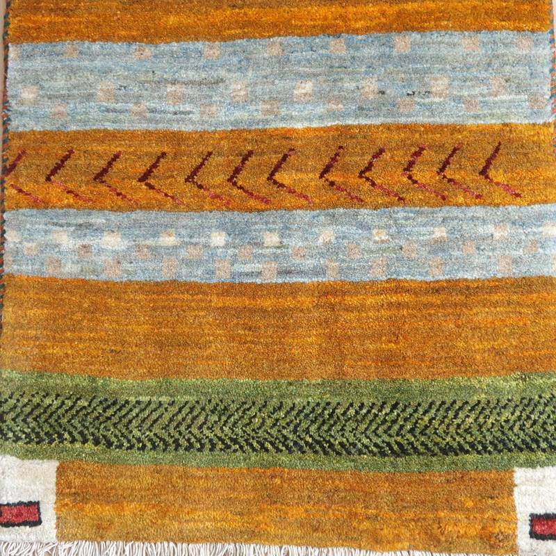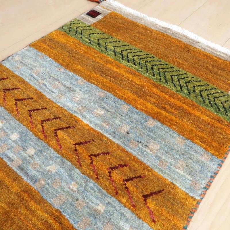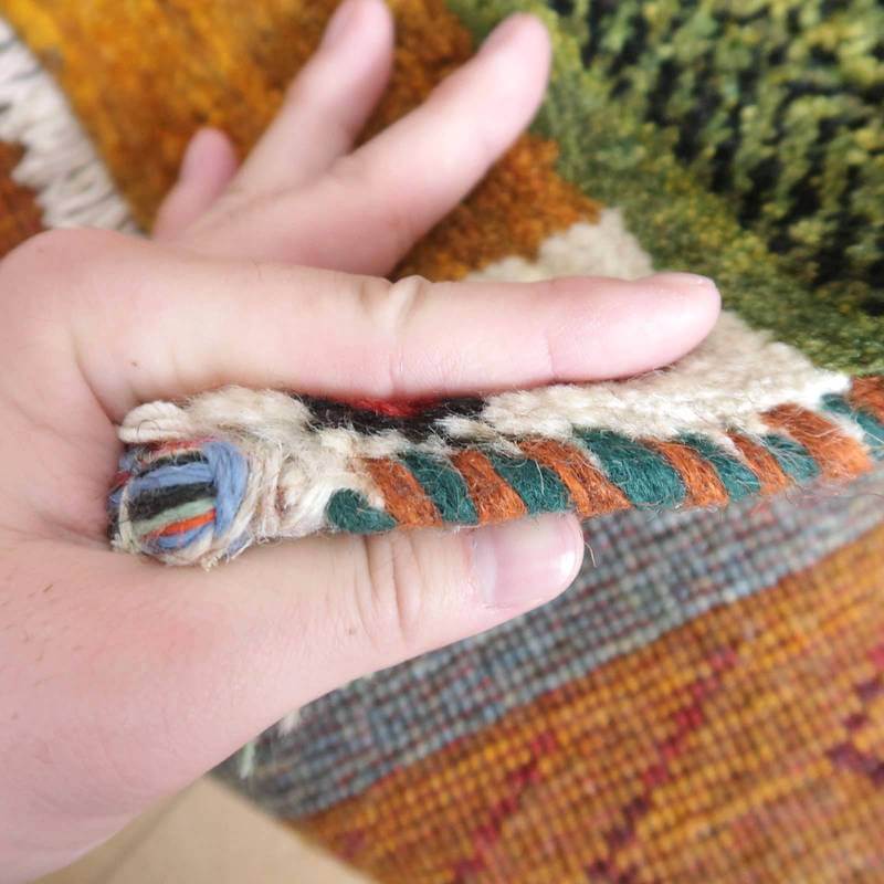織りは、10cmあたり、およそ40から45目という普通のギャッベの数倍にもなる大変細かなルリバフ。抜け毛が少なく、手触りはふわりと柔らか。踏んだ時やんわりと沈み込む踏み心地です。腕の良い選りすぐられた織り子だけが手掛ける極上の手仕事です。