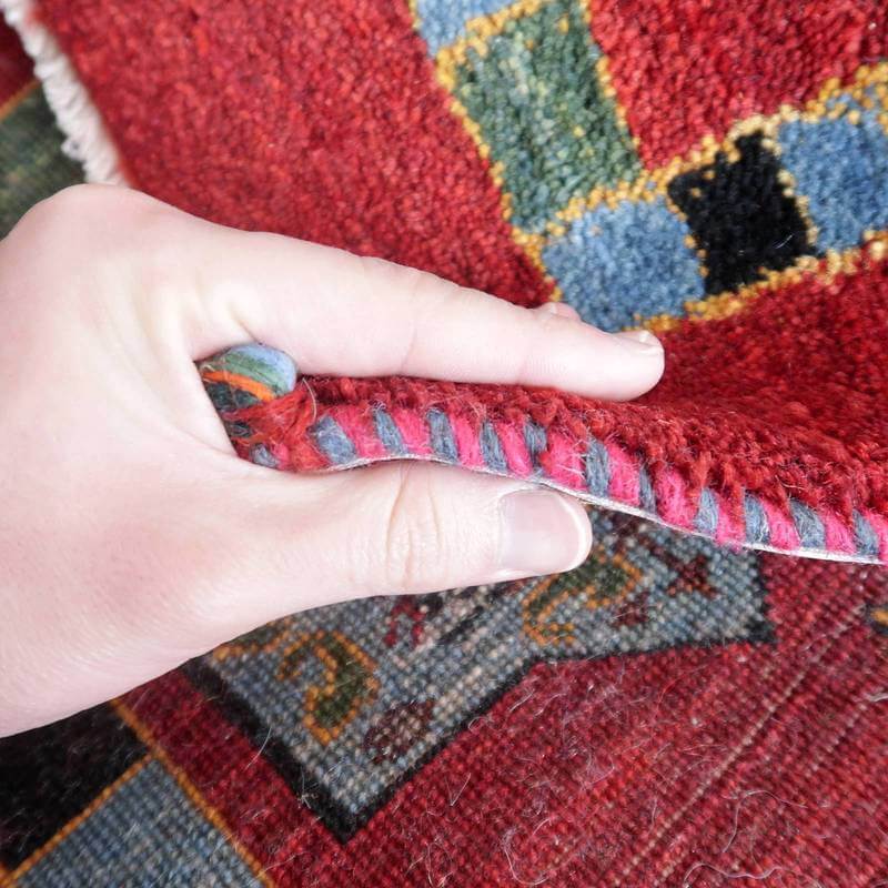織りは、10cmあたり、およそ40から45目という普通のギャッベの数倍にもなる大変細かなルリバフ。抜け毛が少なく、手触りはふわりと柔らか。踏んだ時やんわりと沈み込む踏み心地です。腕の良い選りすぐられた織り子だけが手掛ける極上の手仕事です。