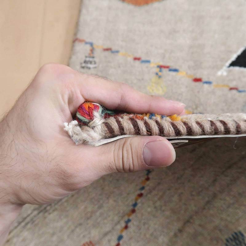 織りは、10cmあたり、およそ40から45目という普通のギャッベの数倍にもなる大変細かなルリバフ。抜け毛が少なく、手触りはふわりと柔らか。踏んだ時やんわりと沈み込む踏み心地です。腕の良い選りすぐられた織り子だけが手掛ける極上の手仕事です。