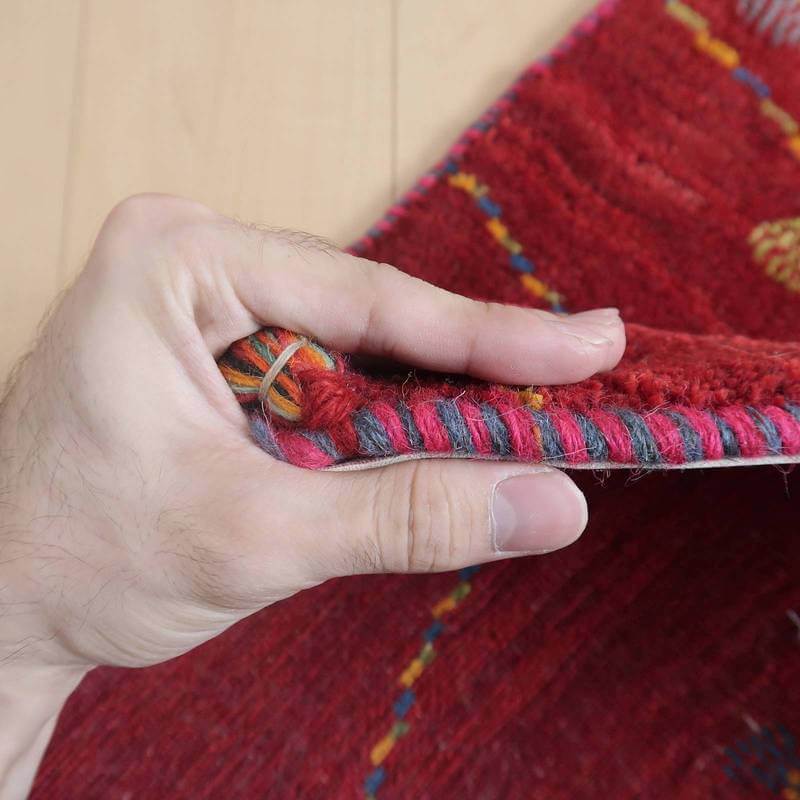 織りは、10cmあたり、およそ40から45目という普通のギャッベの数倍にもなる大変細かなルリバフ。抜け毛が少なく、手触りはふわりと柔らか。踏んだ時やんわりと沈み込む踏み心地です。腕の良い選りすぐられた織り子だけが手掛ける極上の手仕事です。