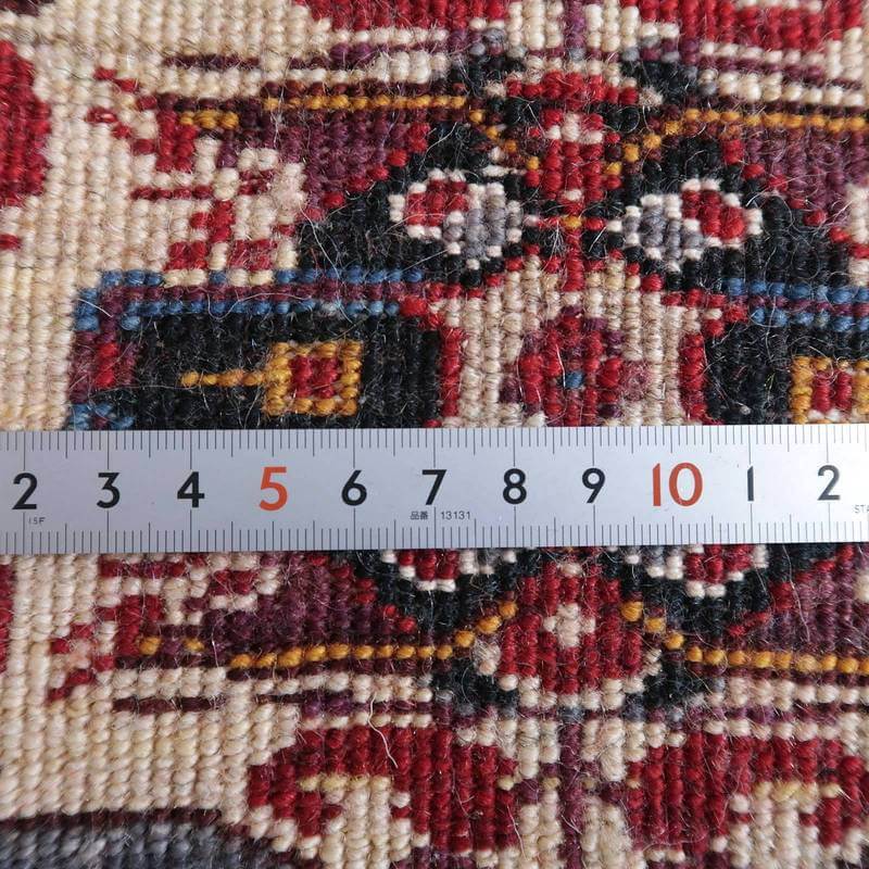 織りは、10cmあたり、およそ40から45目という普通のギャッベの数倍にもなる大変細かなルリバフ。抜け毛が少なく、手触りはふわりと柔らか。踏んだ時やんわりと沈み込む踏み心地です。腕の良い選りすぐられた織り子だけが手掛ける極上の手仕事です。