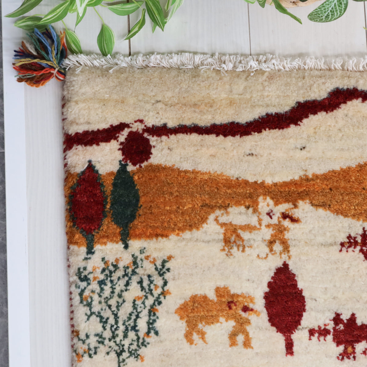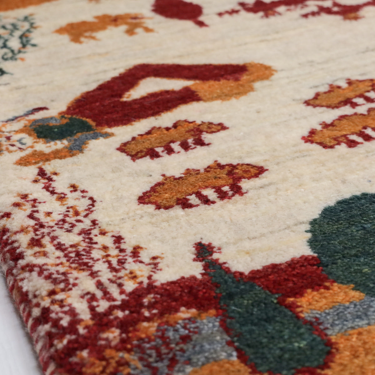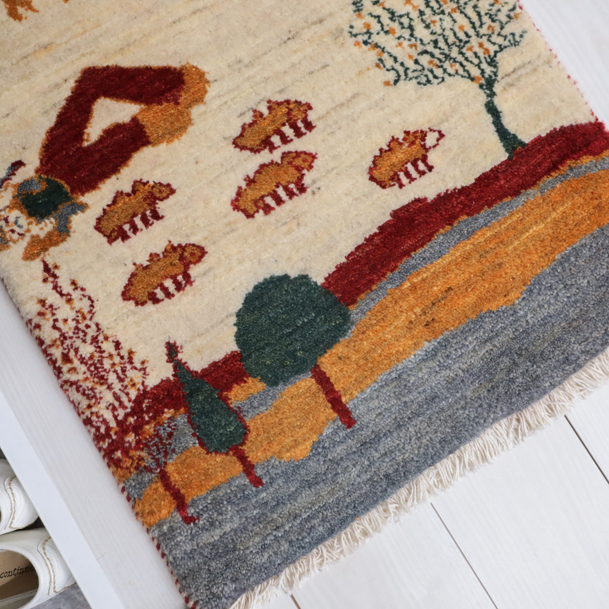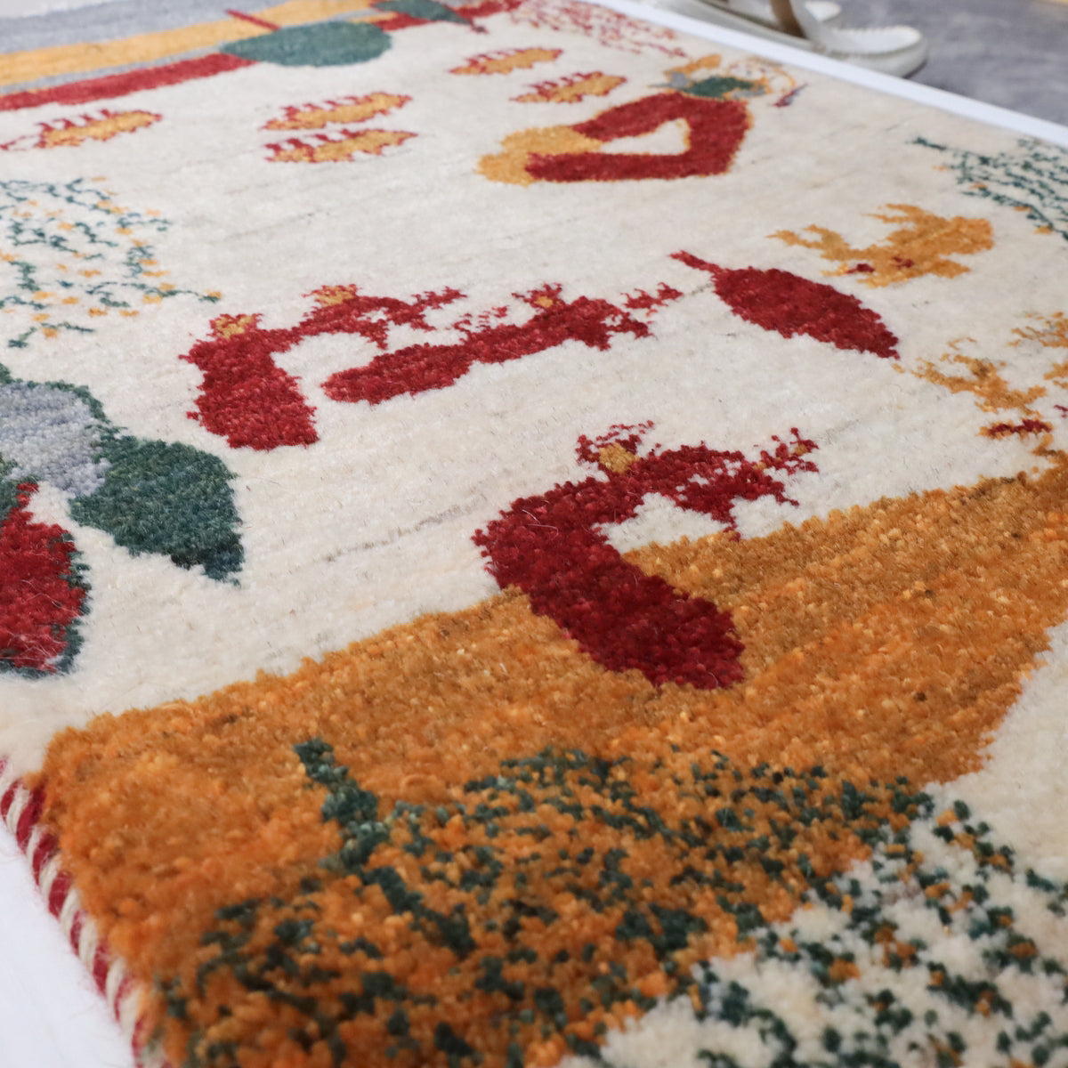 ルリ族によって織られる「ルリバフ」というギャッベは、通常のギャッベの織り目よりもはるかに細かく織られています。ルリバフは高い技術を持つ選ばれた織り子だけが手掛けることができ、デザインは細やかで柔らかなウール素材、やんわりと沈み込む快適な踏み心地のハイランクな上質ギャッベです。
