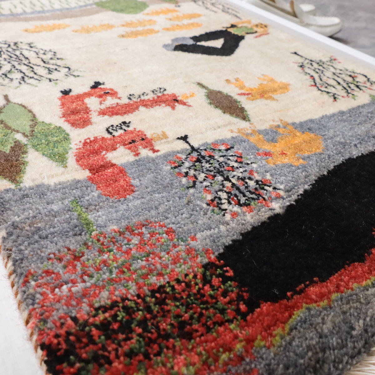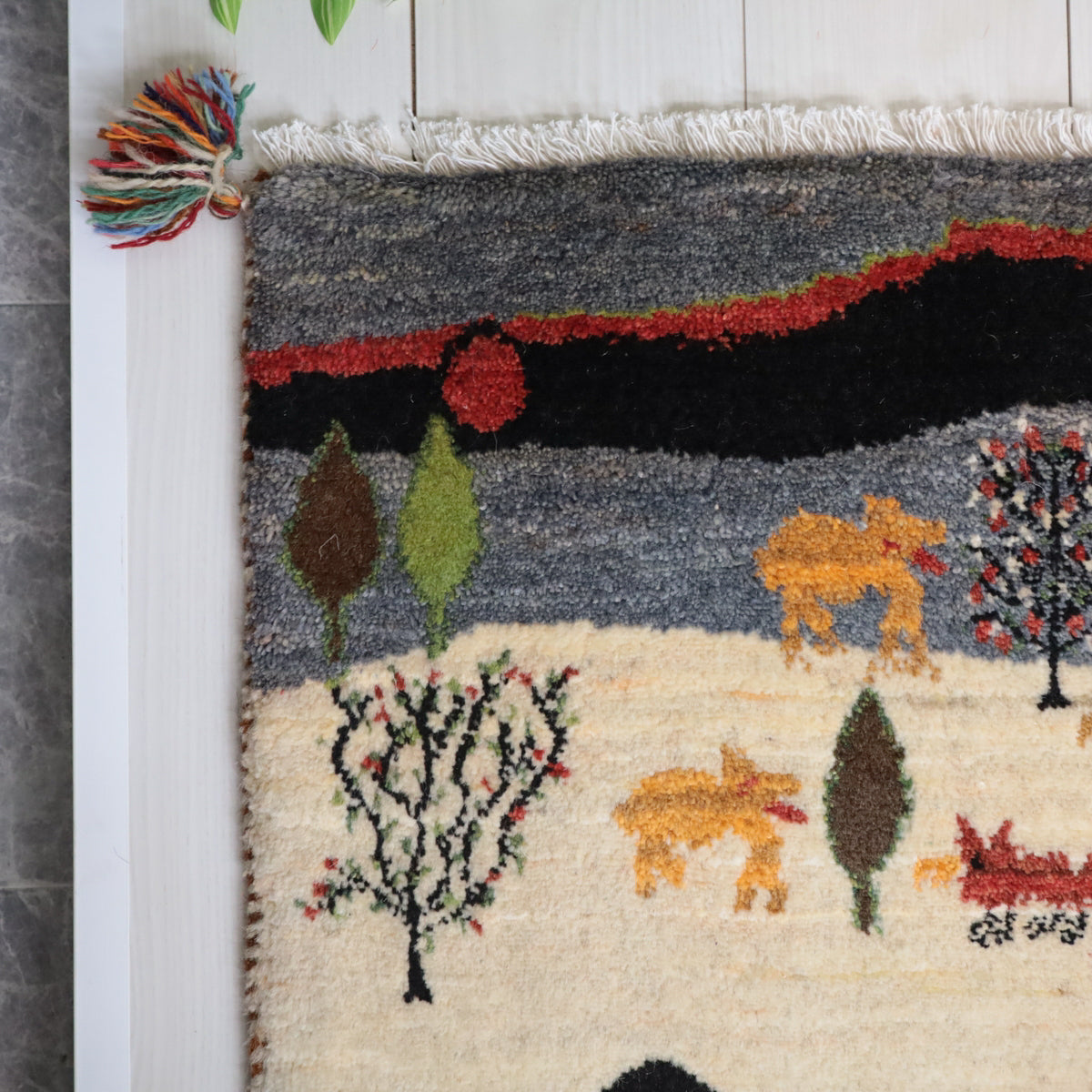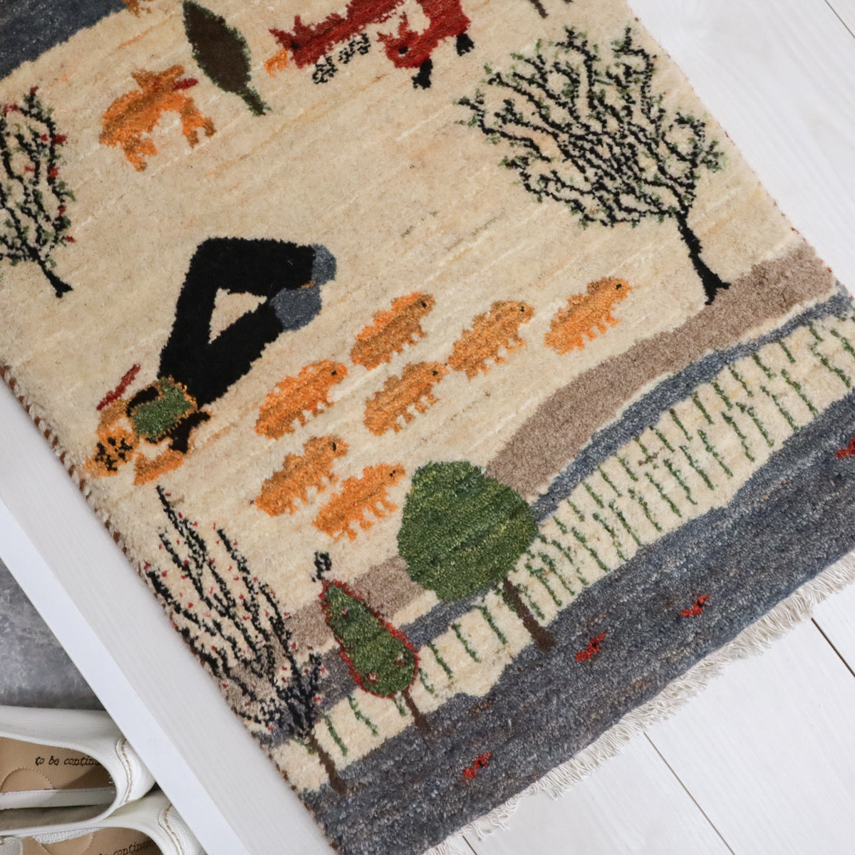 ルリ族によって織られる「ルリバフ」というギャッベは、通常のギャッベの織り目よりもはるかに細かく織られています。ルリバフは高い技術を持つ選ばれた織り子だけが手掛けることができ、デザインは細やかで柔らかなウール素材、やんわりと沈み込む快適な踏み心地のハイランクな上質ギャッベです。