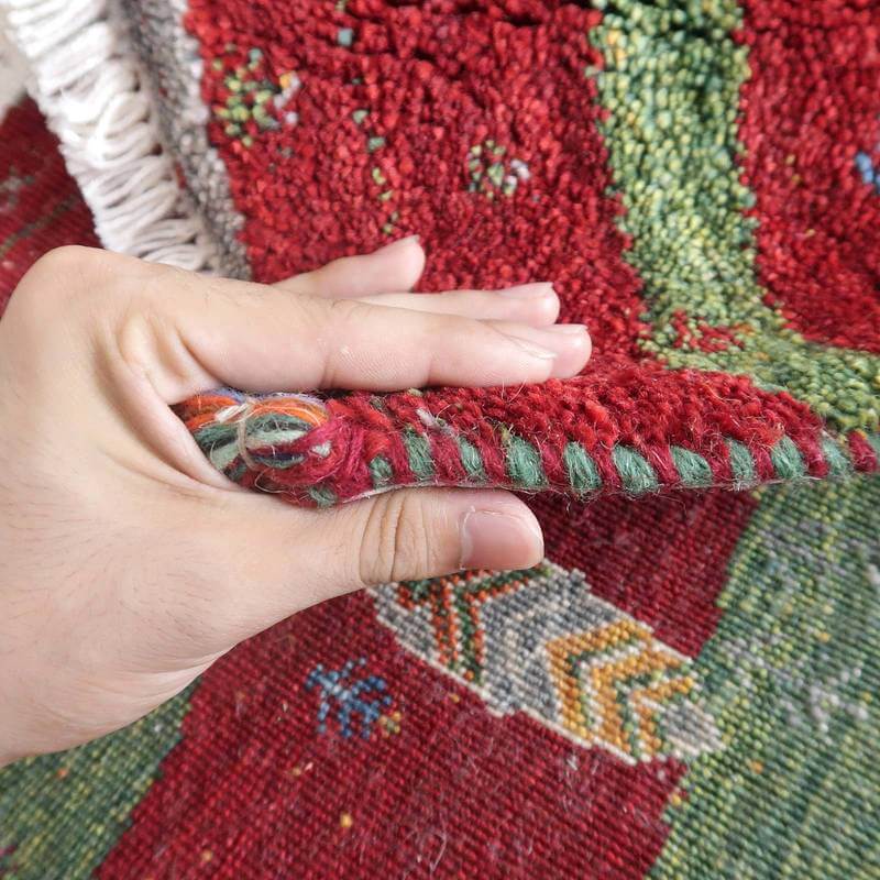 織りは、10cmあたり、およそ40から45目という普通のギャッベの数倍にもなる大変細かなルリバフ。抜け毛が少なく、手触りはふわりと柔らか。踏んだ時やんわりと沈み込む踏み心地です。腕の良い選りすぐられた織り子だけが手掛ける極上の手仕事です。