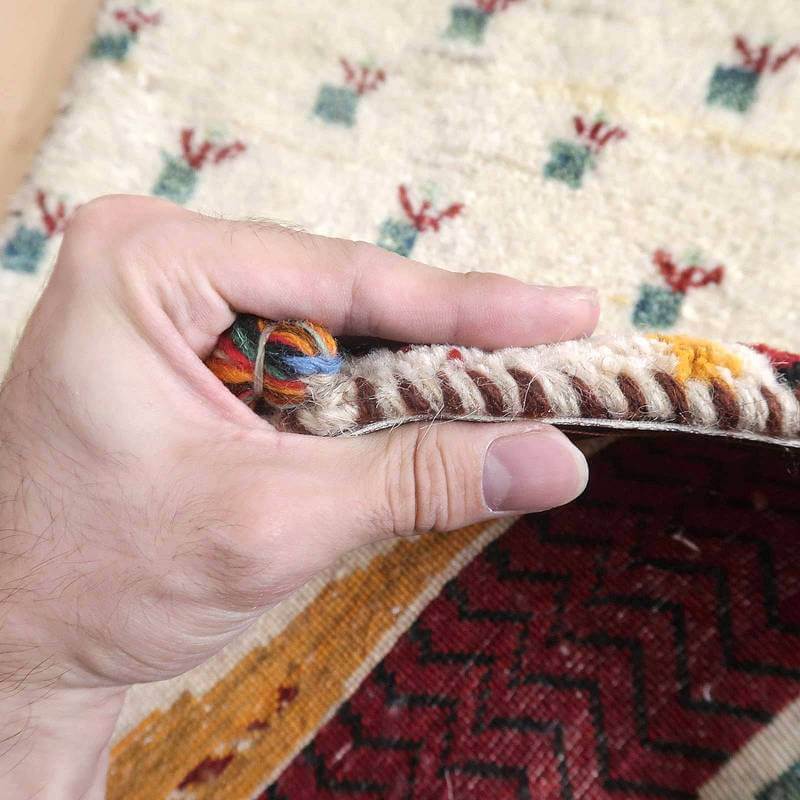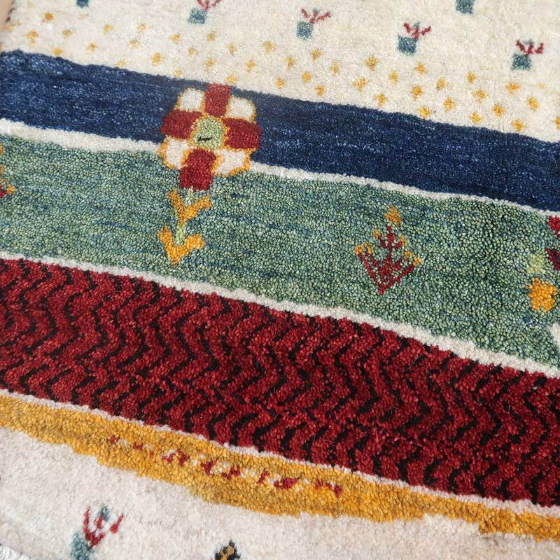 ルリ族によって織られる「ルリバフ」というギャッベは、通常のギャッベの織り目よりもはるかに細かく織られています。ルリバフは高い技術を持つ選ばれた織り子だけが手掛けることができ、デザインは細やかで柔らかなウール素材、やんわりと沈み込む快適な踏み心地のハイランクな上質ギャッベです。