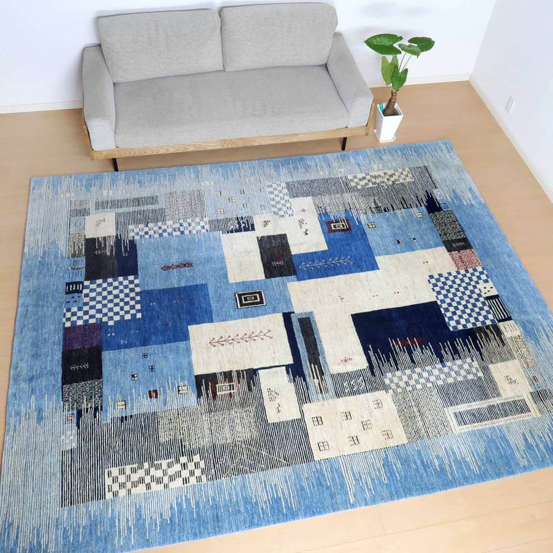プレミアムギャッベ/ホシナマイ(ルリバフ) 303×246cm(HX-10863)
