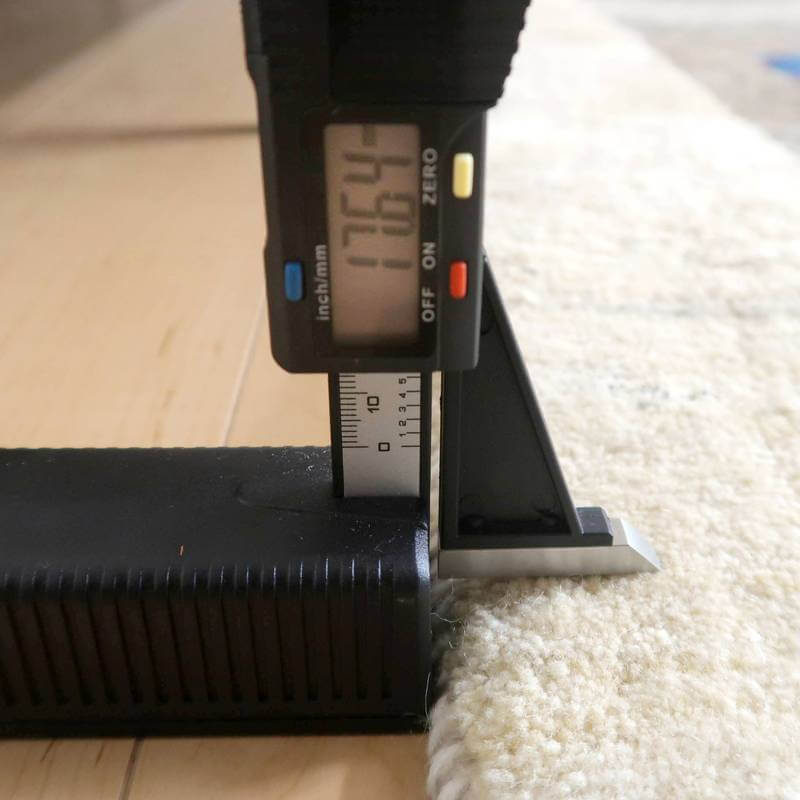 照明の違いで色合いが多少違って見えます。また、ギャッベは毛足に向きがあるので、見る方向で、明るかったり暗かったりも見えます。