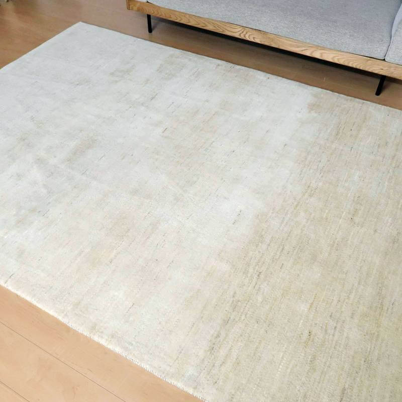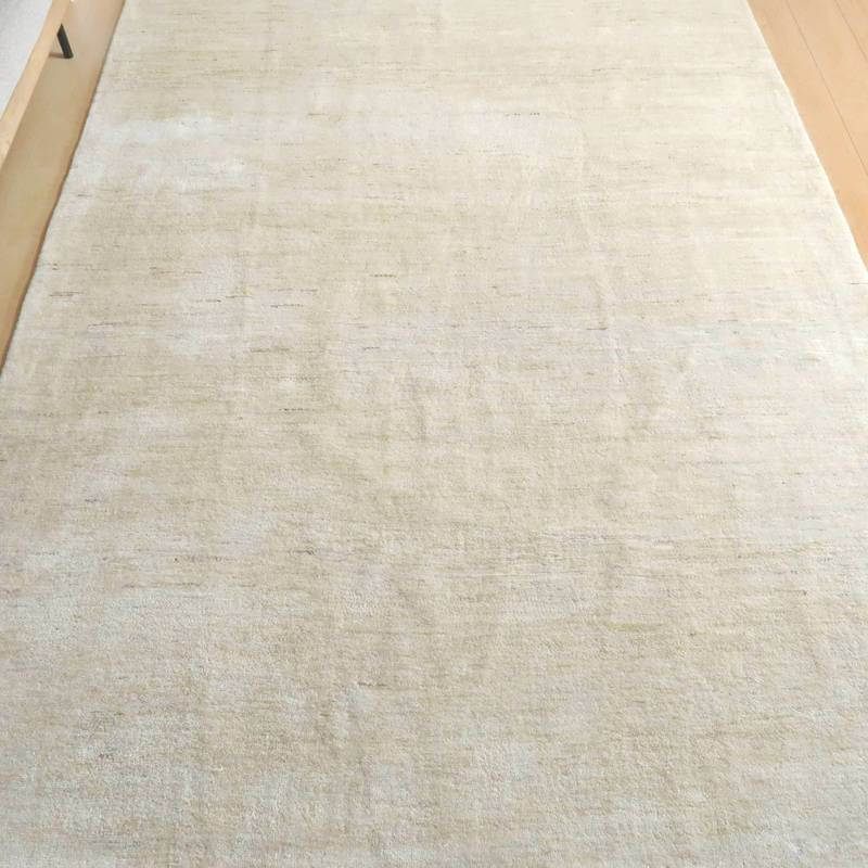 照明の違いで色合いが多少違って見えます。また、ギャッベは毛足に向きがあるので、見る方向で、明るかったり暗かったりも見えます。