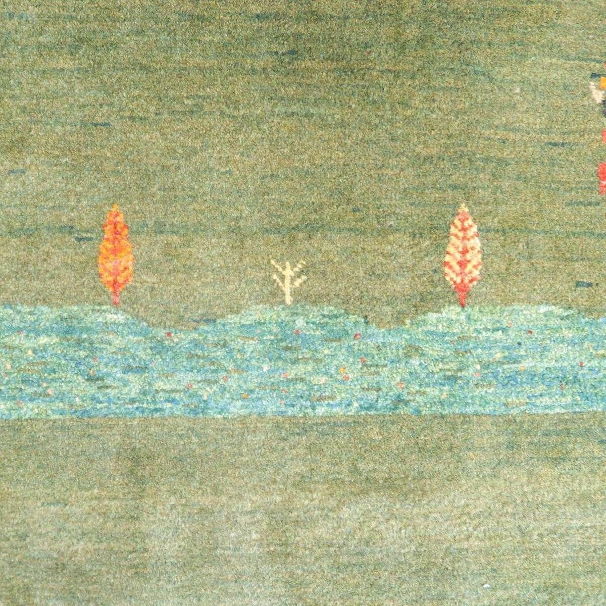 細かなグラデーションが美しい落ち着きのあるモスグリーンのシックな地色。窓越しに遠い山並み、折々の風景を眺めるような自然をイメージしたデザインです。踏んだ時やんわりと沈み込む踏み心地、ハリのある細やかな毛足は遊び毛も少なく、ふわり滑らかな良い手触りです。