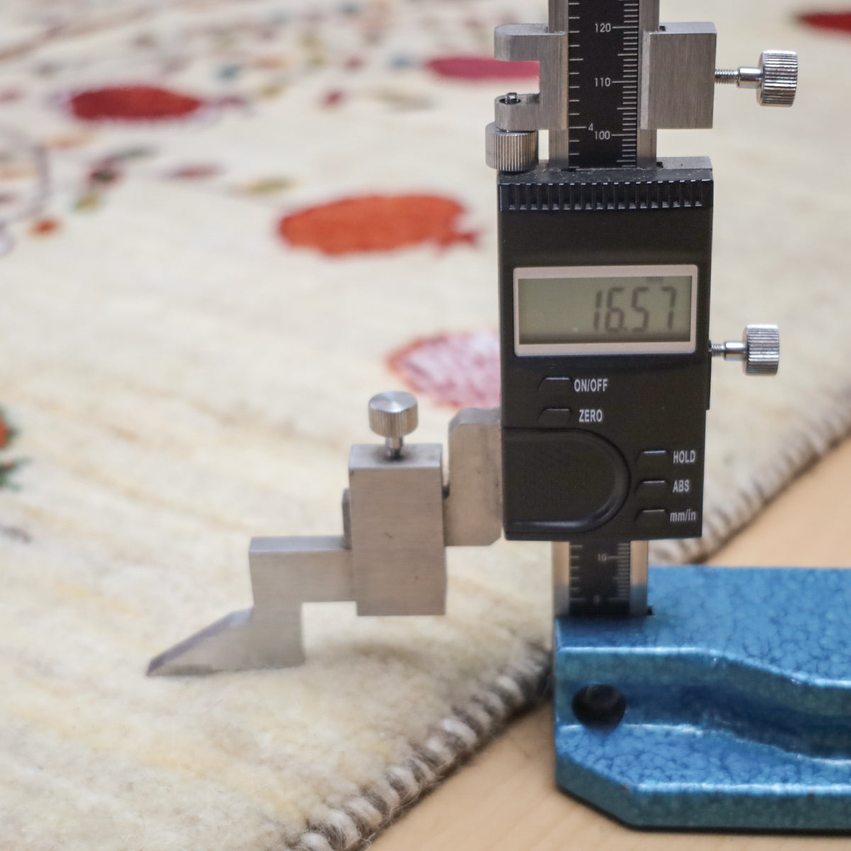 織りは、10cmあたり、およそ40から45目という普通のギャッベの数倍にもなる大変細かなルリバフ。細かく繊細なデザインで手触りはふわりと柔らか。やんわりと沈み込む踏み心地です。腕の良い選りすぐられた織り子だけが手掛ける極上の手仕事です。