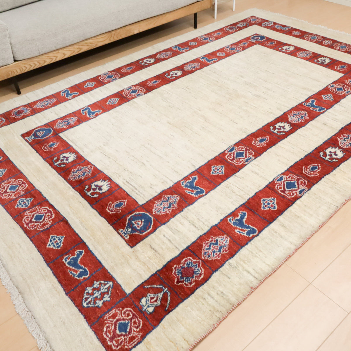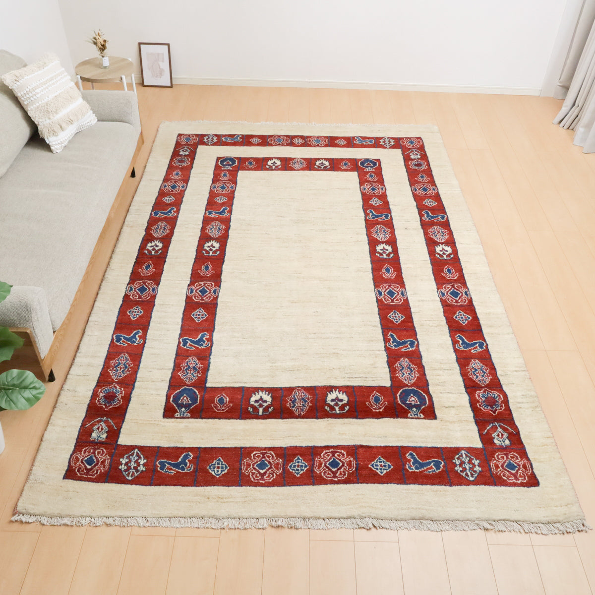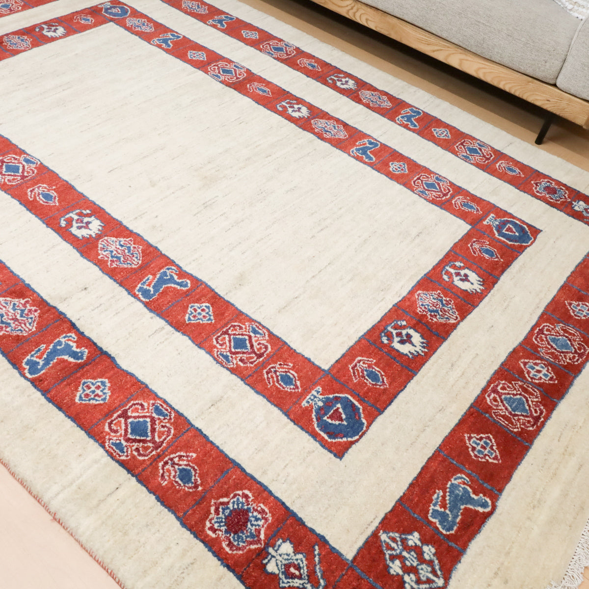 ルリ族によって織られる「ルリバフ」というギャッベは、通常のギャッベの織り目よりもはるかに細かく織られています。ルリバフは高い技術を持つ選ばれた織り子だけが手掛けることができ、デザインは細やかで柔らかなウール素材、やんわりと沈み込む快適な踏み心地のハイランクな上質ギャッベです。