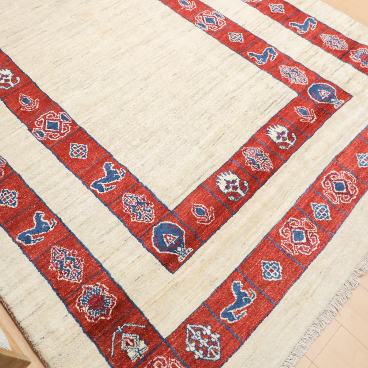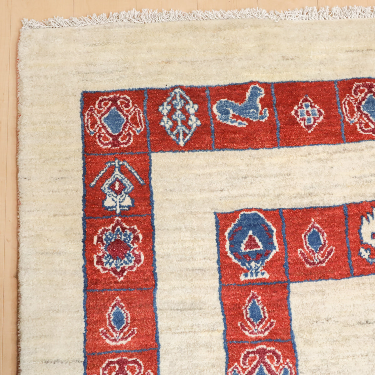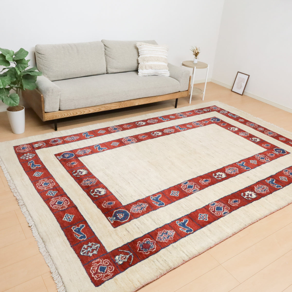 ルリ族によって織られる「ルリバフ」というギャッベは、通常のギャッベの織り目よりもはるかに細かく織られています。ルリバフは高い技術を持つ選ばれた織り子だけが手掛けることができ、デザインは細やかで柔らかなウール素材、やんわりと沈み込む快適な踏み心地のハイランクな上質ギャッベです。