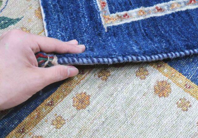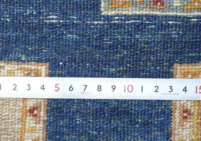 織りは、10cmあたり、およそ40から45目という普通のギャッベの数倍にもなる大変細かなルリバフ。抜け毛が少なく、手触りはふわりと柔らか。踏んだ時やんわりと沈み込む踏み心地です。腕の良い選りすぐられた織り子だけが手掛ける極上の手仕事です。