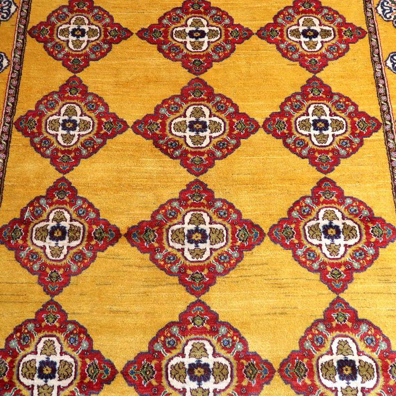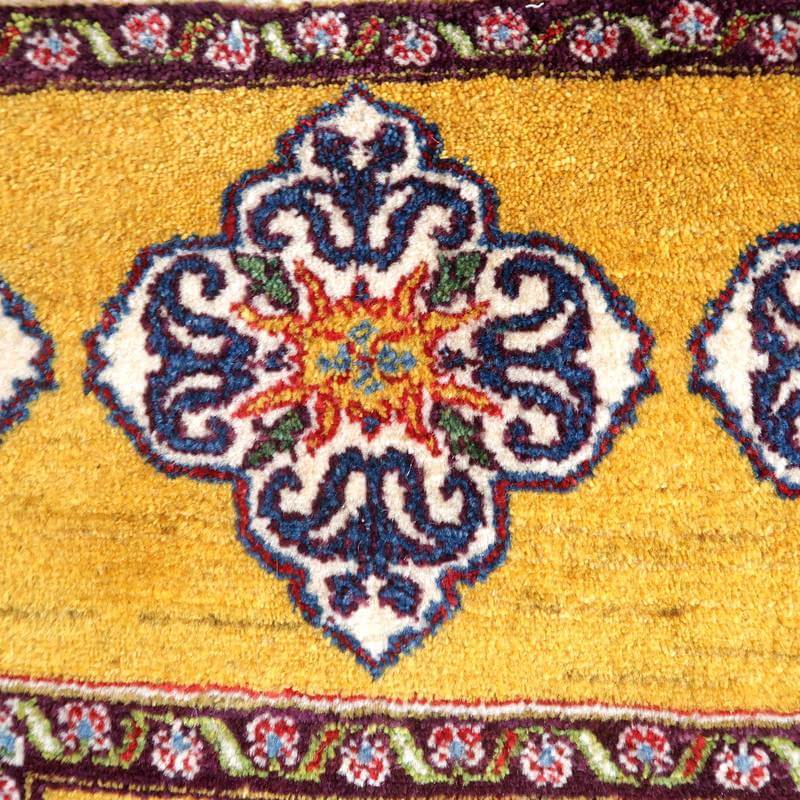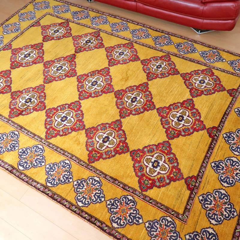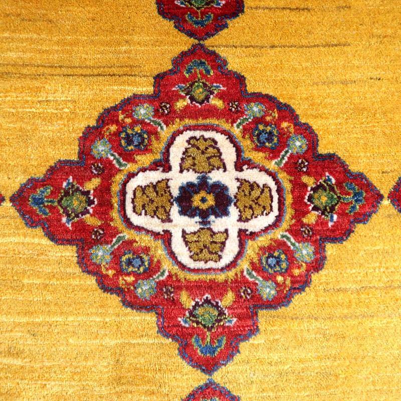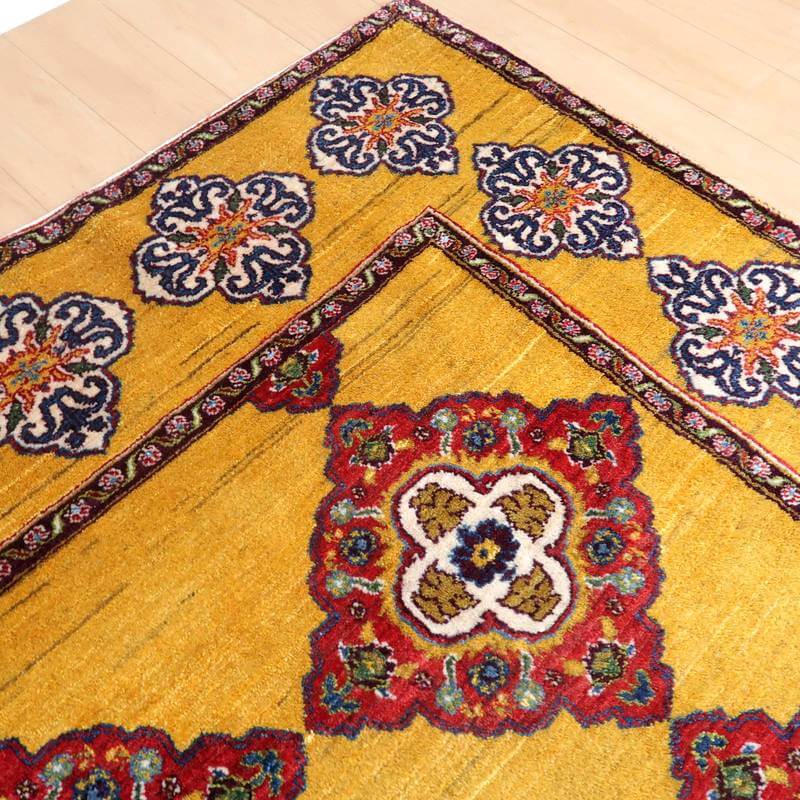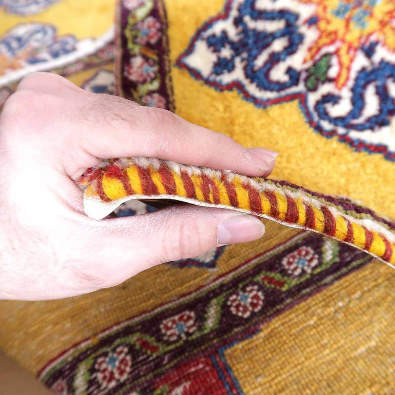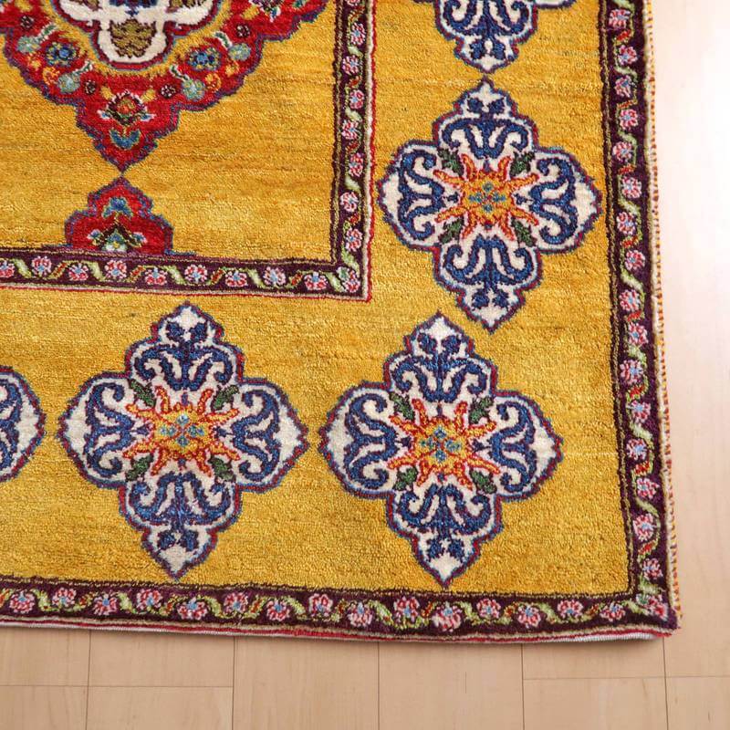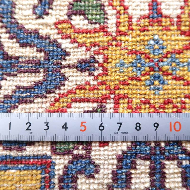 織りは、10cmあたり、およそ40から45目という普通のギャッベの数倍にもなる大変細かなルリバフ。抜け毛が少なく、手触りはふわりと柔らか。踏んだ時やんわりと沈み込む踏み心地です。腕の良い選りすぐられた織り子だけが手掛ける極上の手仕事です。