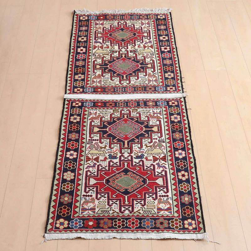 スマック織りとは、イランのキリムの織り方の技法です。生地は刺繍のような仕上がりですが、これは後から刺したものではなく、土台の縦糸と横糸の上にもう一本横糸を絡めるように巻き込んで織っていく高度なテクニックで、生地を二重に織るため通常の平織りのキリムより倍の手間ひまが掛かる分高価になりますが、非常に堅固で丈夫、また普通より細かなデザインを描けるという長所がありますので、価格以上の価値を感じて頂けるキリムです。