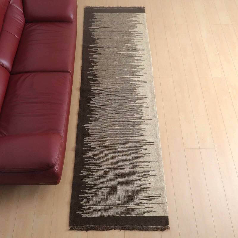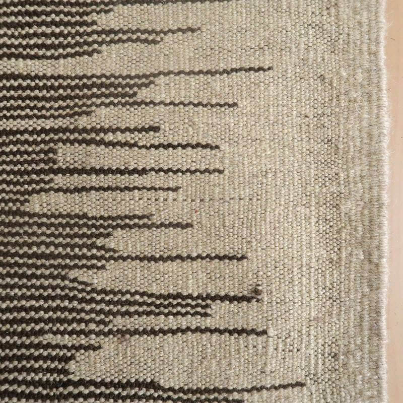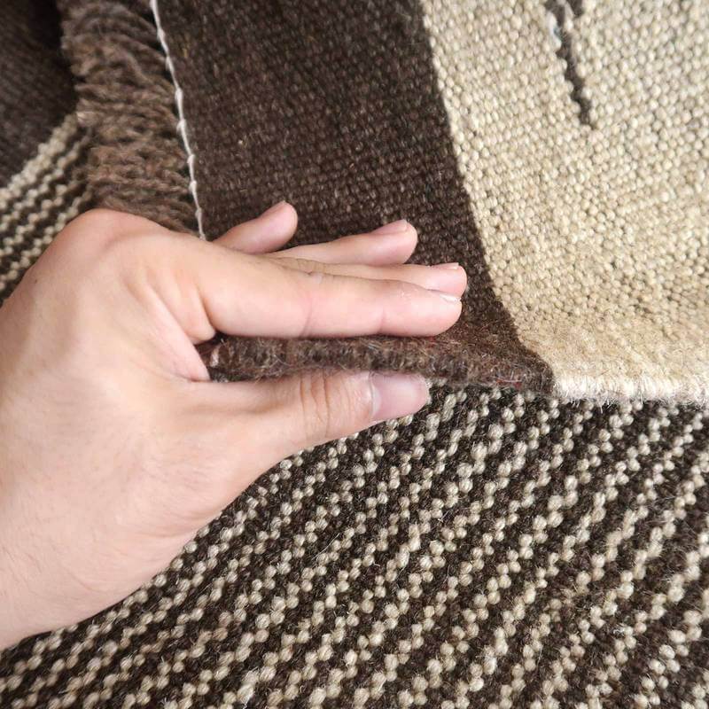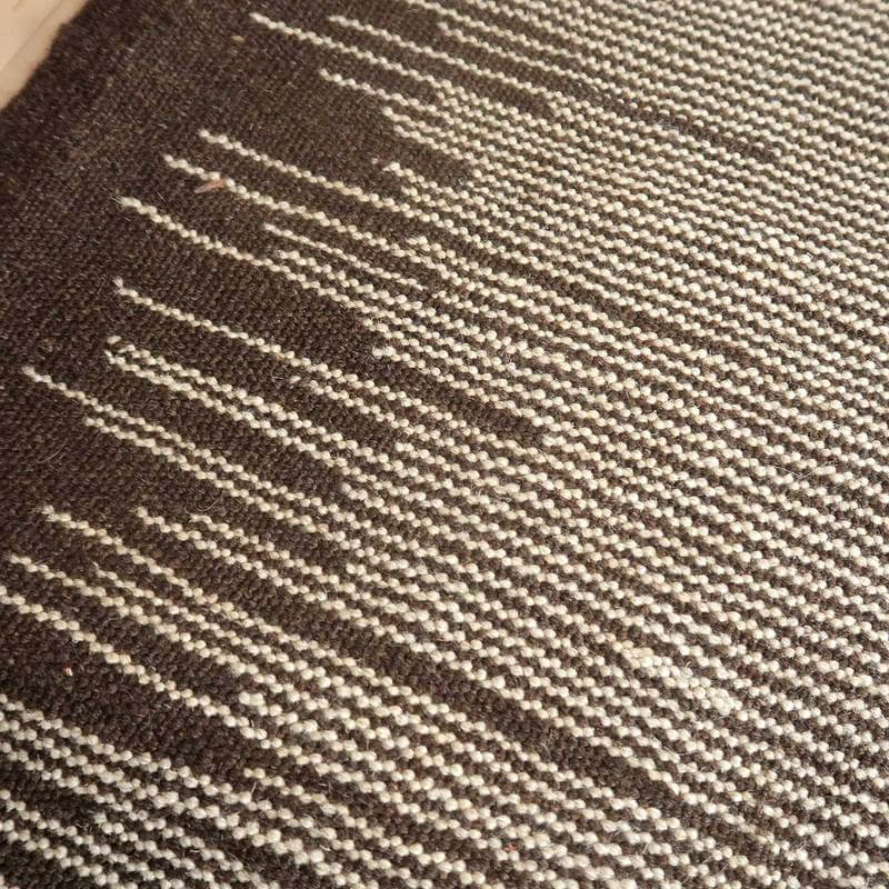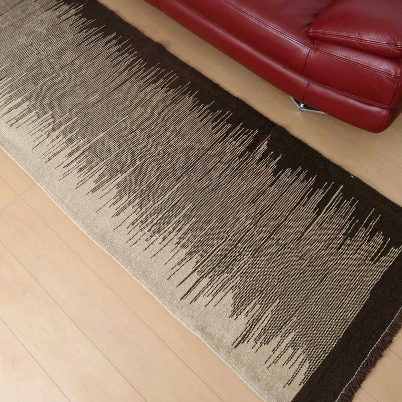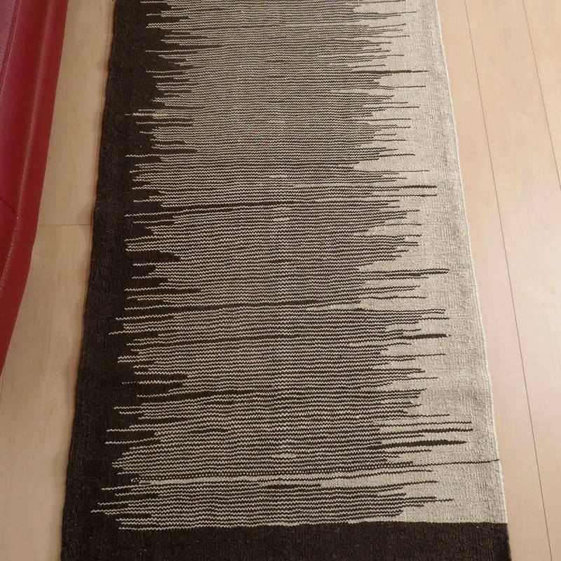 イラン南部シラーズ地方のキリムです。生成りや茶、グレーなどの元々の羊の毛色をそのまま活かした無染色のウールを使用したナチュラルカラーなので、敷く場所を選ばず、落ち着いた雰囲気で馴染みます。幾何学やギザギザ文様のシンプルな中にもリズムのあるモダンなデザイン。カシュガイの女性が昔ながらに織り上げたキリムなので、よく締まった丈夫な織り目で、早く仕上げる為、ゆるく粗く織られる商用生産のキリムには無い、誠実さと愛着が感じられる味わい深さがあります。作りは、平織り(ひらおり)という裏表の無い、両面を使える織り方。カシュガイ・キリムは遊牧のテント生活用の為、丈夫に織られ、洗濯も簡単、普段使いのラグとして扱いやすいキリムです。