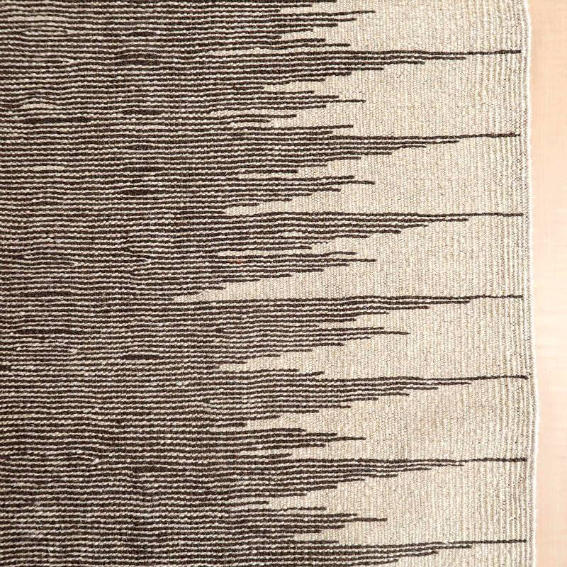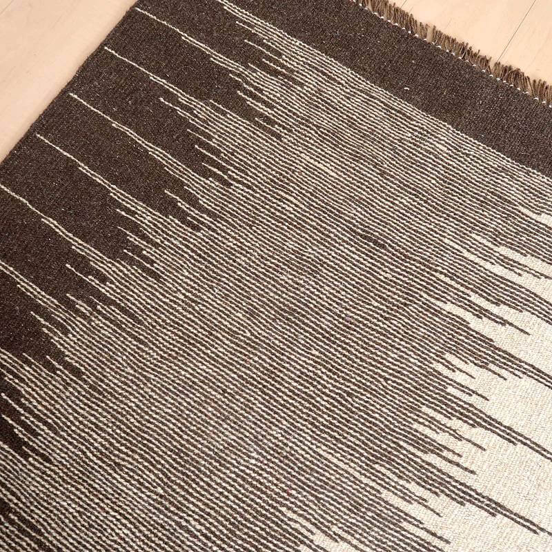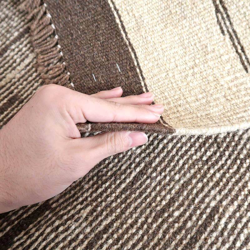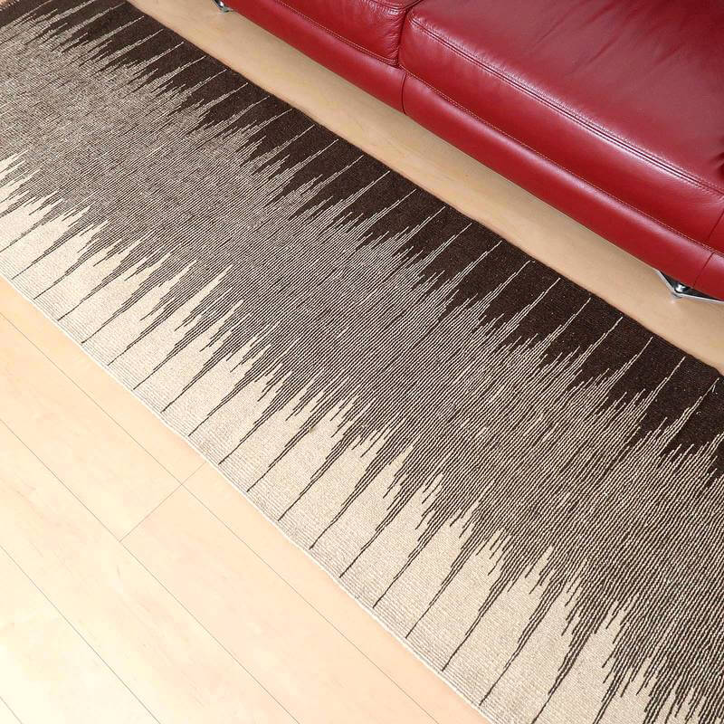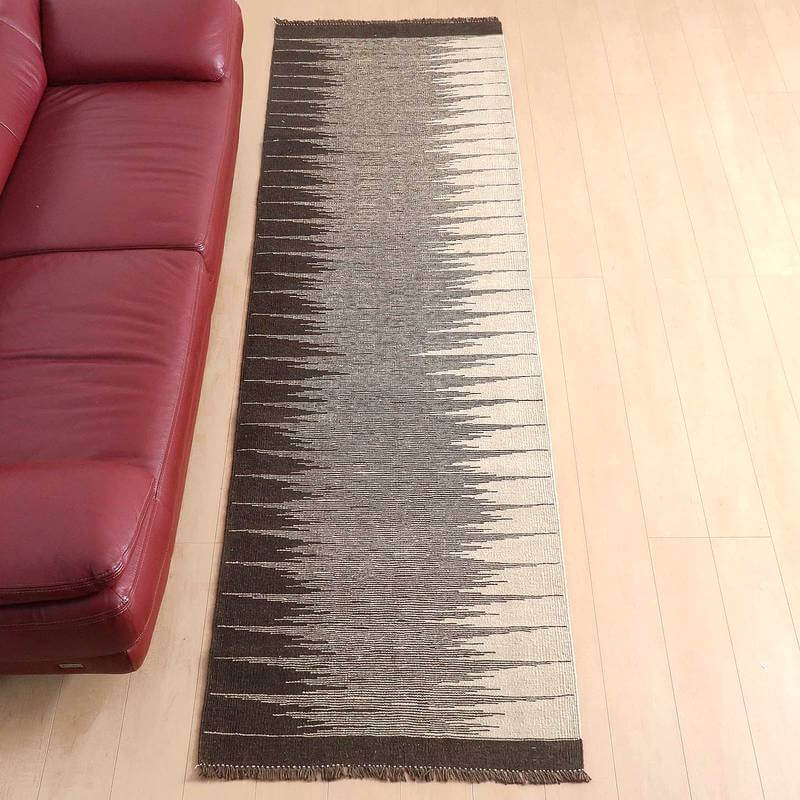 イラン南部シラーズ地方のキリムです。生成りや茶、グレーなどの元々の羊の毛色をそのまま活かした無染色のウールを使用したナチュラルカラーなので、敷く場所を選ばず、落ち着いた雰囲気で馴染みます。幾何学やギザギザ文様のシンプルな中にもリズムのあるモダンなデザイン。カシュガイの女性が昔ながらに織り上げたキリムなので、よく締まった丈夫な織り目で、早く仕上げる為、ゆるく粗く織られる商用生産のキリムには無い、誠実さと愛着が感じられる味わい深さがあります。作りは、平織り(ひらおり)という裏表の無い、両面を使える織り方。カシュガイ・キリムは遊牧のテント生活用の為、丈夫に織られ、洗濯も簡単、普段使いのラグとして扱いやすいキリムです。