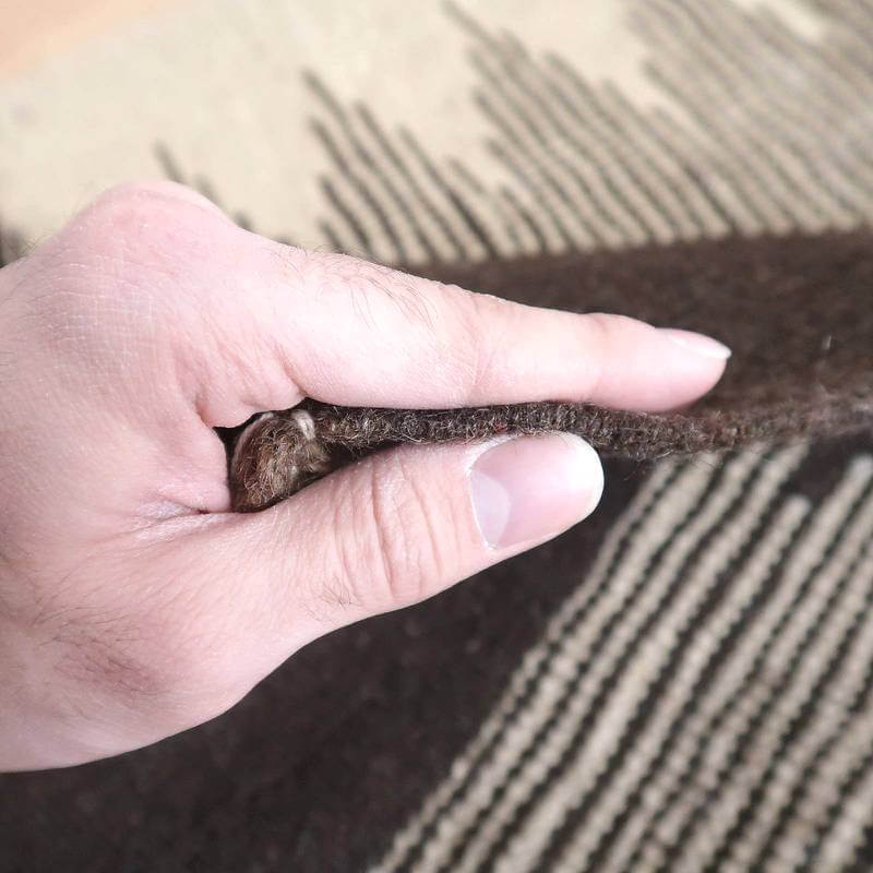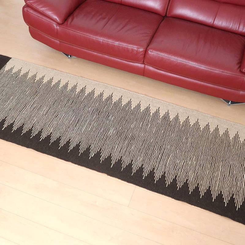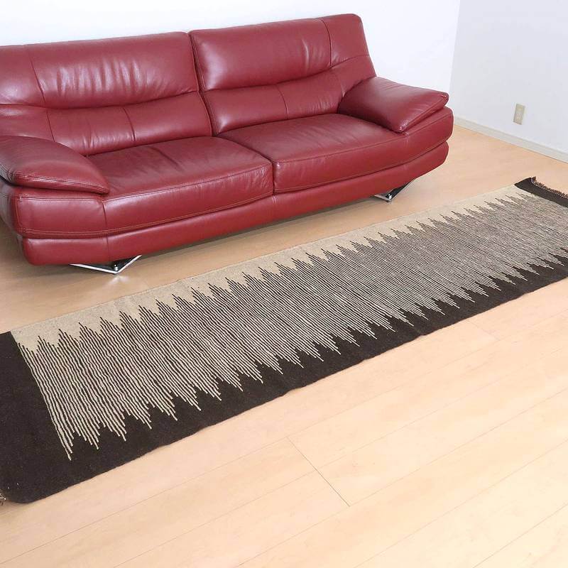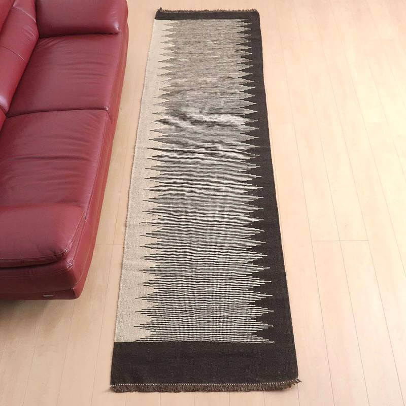 イラン南部シラーズ地方のキリムです。生成りや茶、グレーなどの元々の羊の毛色をそのまま活かした無染色のウールを使用したナチュラルカラーなので、敷く場所を選ばず、落ち着いた雰囲気で馴染みます。幾何学やギザギザ文様のシンプルな中にもリズムのあるモダンなデザイン。カシュガイの女性が昔ながらに織り上げたキリムなので、よく締まった丈夫な織り目で、早く仕上げる為、ゆるく粗く織られる商用生産のキリムには無い、誠実さと愛着が感じられる味わい深さがあります。作りは、平織り(ひらおり)という裏表の無い、両面を使える織り方。カシュガイ・キリムは遊牧のテント生活用の為、丈夫に織られ、洗濯も簡単、普段使いのラグとして扱いやすいキリムです。
