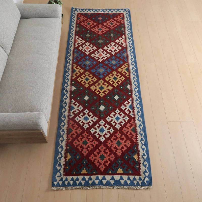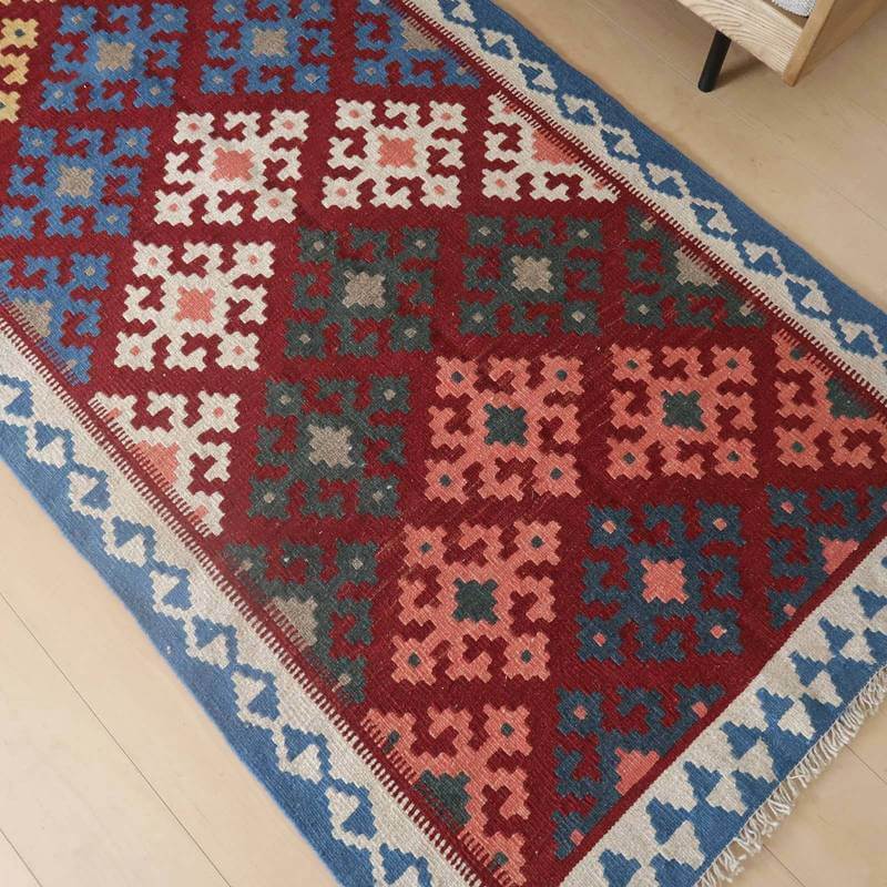 ペルシャ(イラン)産のキリムは、1_飽きのこないデザイン、2_いつの時代もあらゆるインテリアに馴染む、3_モダンで芸術性の高い図柄、として世界各国で、愛用され、それゆえ模倣もされています。図柄の美しさはもちろん、長い歴史に培われてきた製法や織りのテクニックの完成度は、世界最高峰。本物志向の方、違いの分かる方に愛されています。