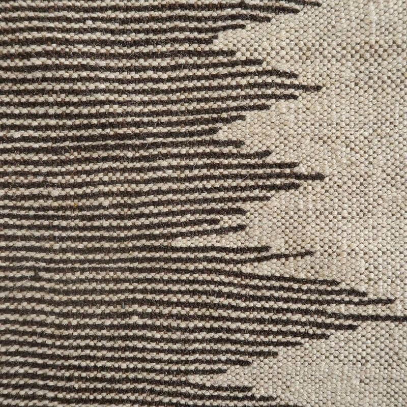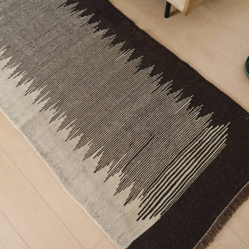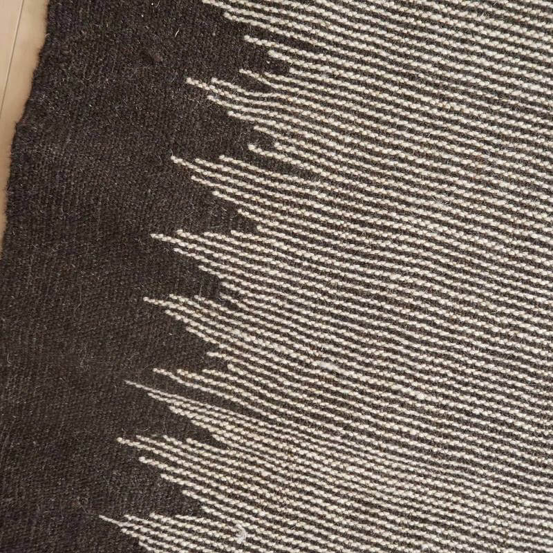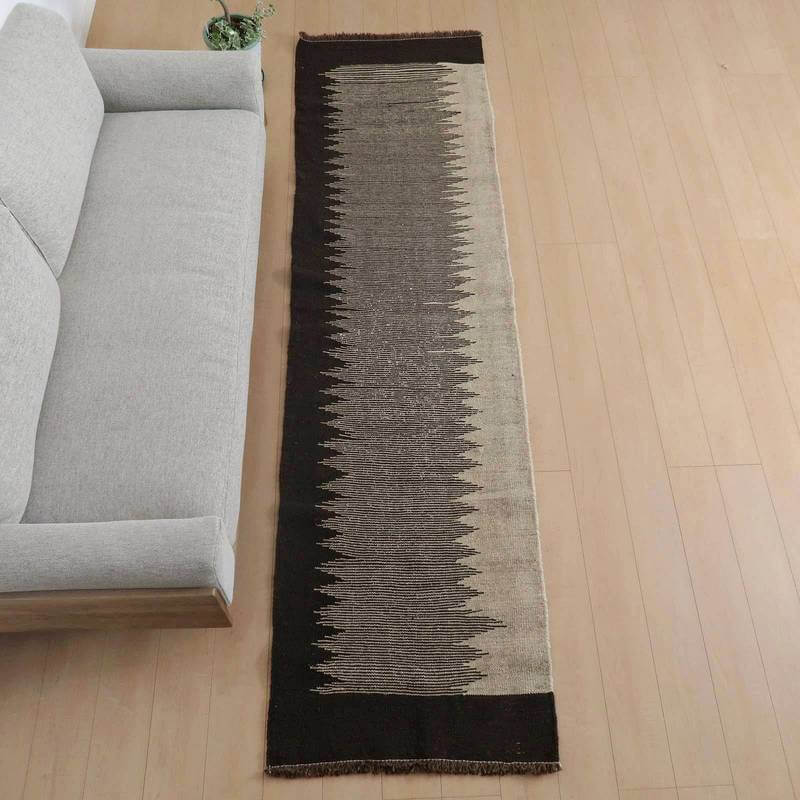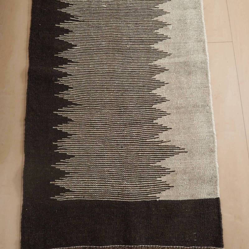 イラン南部シラーズ地方のキリムです。生成りや茶、グレーなどの元々の羊の毛色をそのまま活かした無染色のウールを使用したナチュラルカラーなので、敷く場所を選ばず、落ち着いた雰囲気で馴染みます。幾何学やギザギザ文様のシンプルな中にもリズムのあるモダンなデザイン。カシュガイの女性が昔ながらに織り上げたキリムなので、よく締まった丈夫な織り目で、早く仕上げる為、ゆるく粗く織られる商用生産のキリムには無い、誠実さと愛着が感じられる味わい深さがあります。作りは、平織り(ひらおり)という裏表の無い、両面を使える織り方。カシュガイ・キリムは遊牧のテント生活用の為、丈夫に織られ、洗濯も簡単、普段使いのラグとして扱いやすいキリムです。