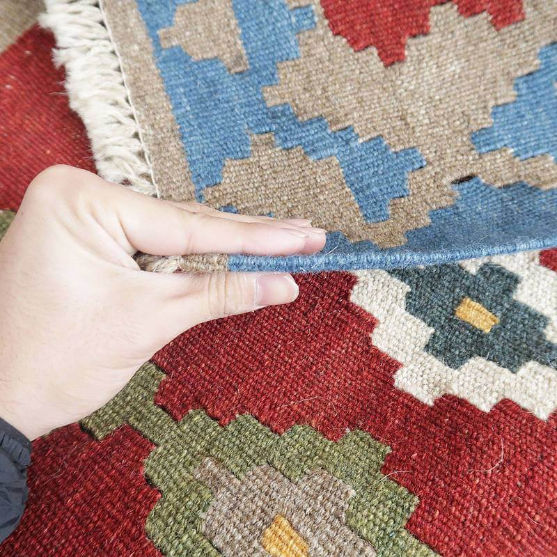 ペルシャ(イラン)産のキリムは、1_飽きのこないデザイン、2_いつの時代もあらゆるインテリアに馴染む、3_モダンで芸術性の高い図柄、として世界各国で、愛用され、それゆえ模倣もされています。図柄の美しさはもちろん、長い歴史に培われてきた製法や織りのテクニックの完成度は、世界最高峰。本物志向の方、違いの分かる方に愛されています。