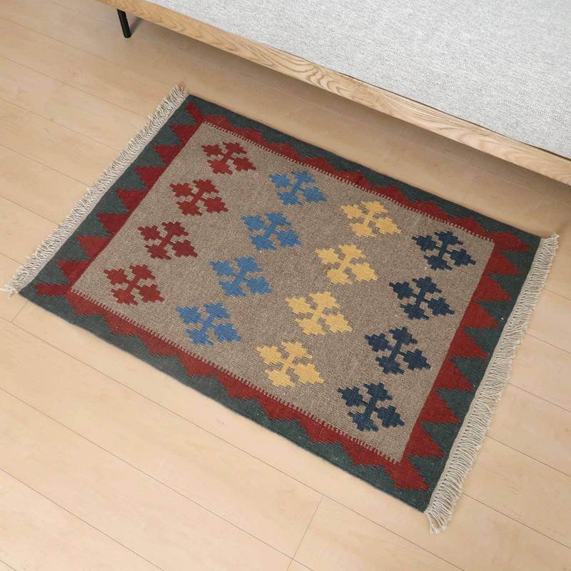 ペルシャ(イラン)産のキリムは、1_飽きのこないデザイン、2_いつの時代もあらゆるインテリアに馴染む、3_モダンで芸術性の高い図柄、として世界各国で、愛用され、それゆえ模倣もされています。図柄の美しさはもちろん、長い歴史に培われてきた製法や織りのテクニックの完成度は、世界最高峰。本物志向の方、違いの分かる方に愛されています。