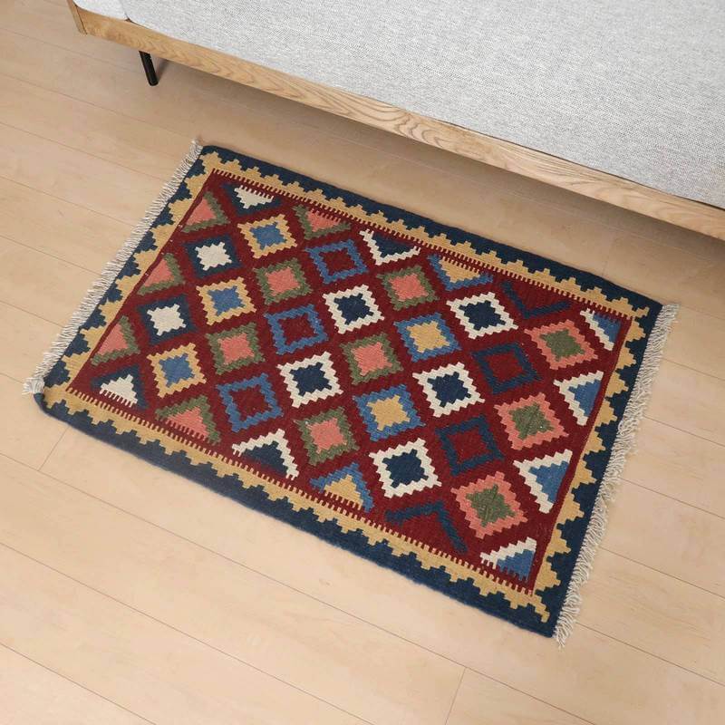 ペルシャ(イラン)産のキリムは、1_飽きのこないデザイン、2_いつの時代もあらゆるインテリアに馴染む、3_モダンで芸術性の高い図柄、として世界各国で、愛用され、それゆえ模倣もされています。図柄の美しさはもちろん、長い歴史に培われてきた製法や織りのテクニックの完成度は、世界最高峰。本物志向の方、違いの分かる方に愛されています。
