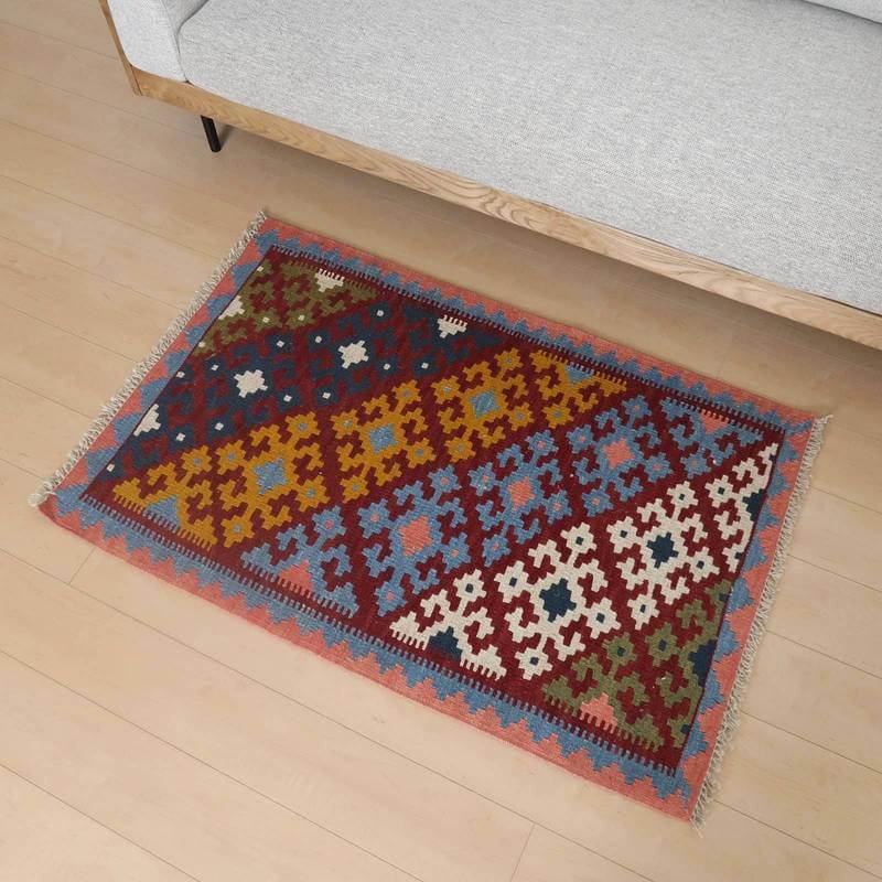 ペルシャ(イラン)産のキリムは、1_飽きのこないデザイン、2_いつの時代もあらゆるインテリアに馴染む、3_モダンで芸術性の高い図柄、として世界各国で、愛用され、それゆえ模倣もされています。図柄の美しさはもちろん、長い歴史に培われてきた製法や織りのテクニックの完成度は、世界最高峰。本物志向の方、違いの分かる方に愛されています。
