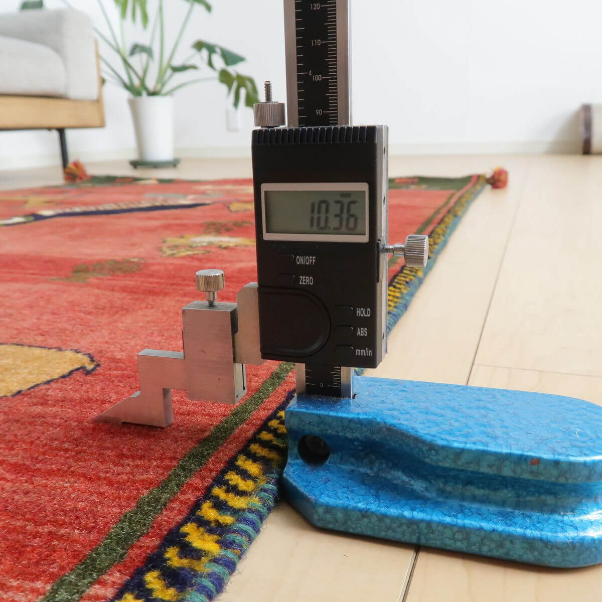 照明の違いで色合いが多少違って見えます。また、ギャッベは毛足に向きがあるので、見る方向で、明るかったり暗かったりも見えます。