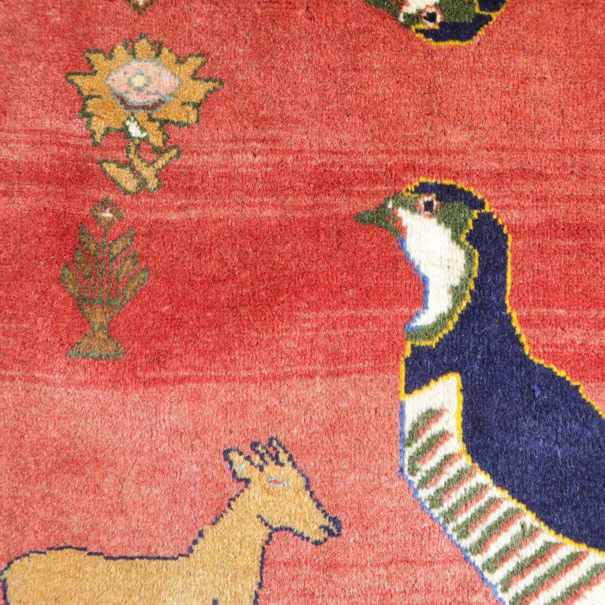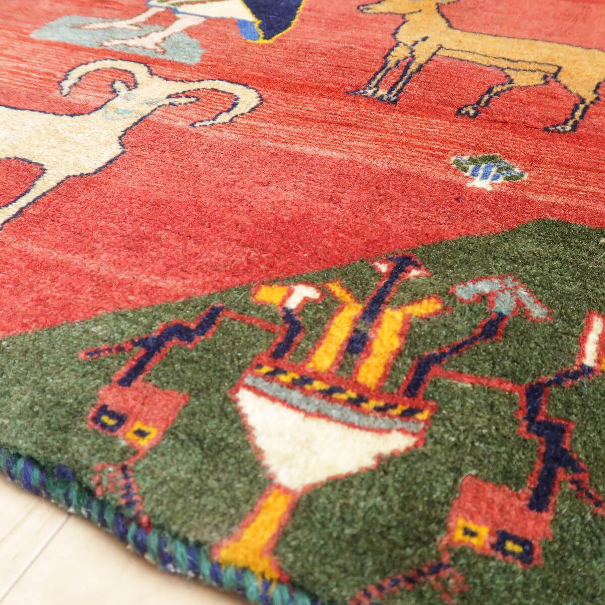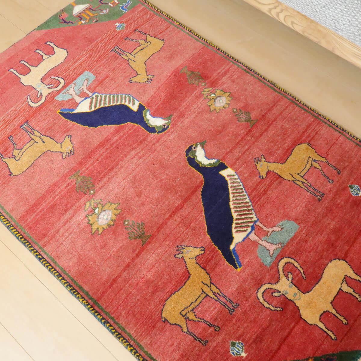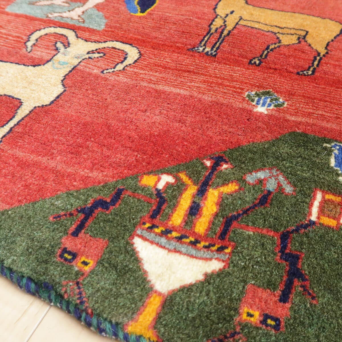 ギャッベの中でも特に細い織り糸を使用して、こまかく織られたノット数の高い商品です。結び目が小さい為デザインが絵画のような滑らかな出方で、また、踏んだ感触もしっとりハリ感があって上質感が感じられます。コンディションの良い品を厳選しておりますが、年代なりの魅力としての擦れたような箇所、形の歪みやにじみ等がみられる部分は敢えて持たせるセレクトとしております、新品にはない味わいとしてご鑑賞ください。メンテナンスクリーニングは現地と自社で二重に施しており、清潔感をもって使えます。
