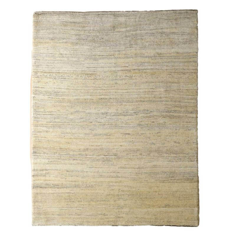 羊の毛色をそのまま活かした無染色の羊色のベースは、どんな場所にも似合うナチュラルな風合い。薄いグレーやベージュのグラデーションがやんわり入った、シンプルなデザインのギャッベです。
