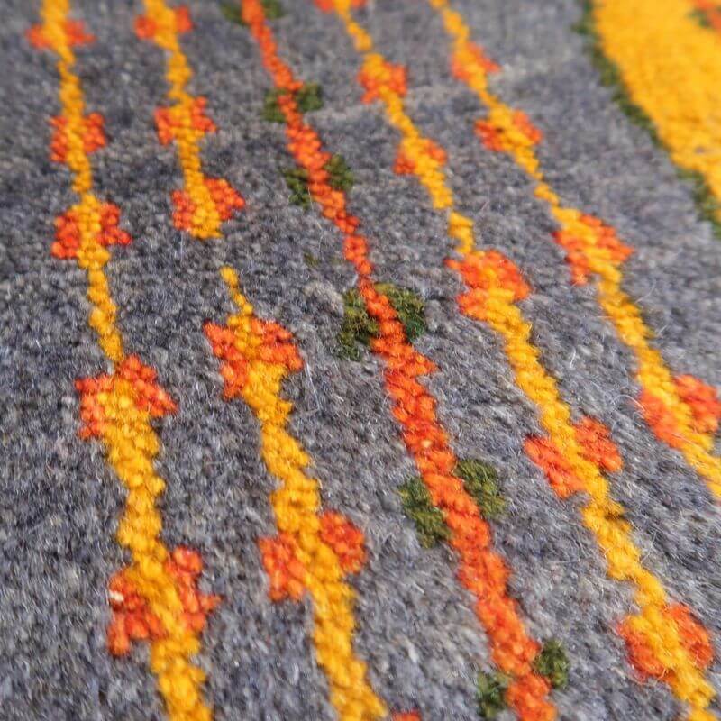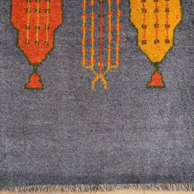 こちらは、「アマレ」という織りの細かなランクのギャッベです。織り密度が通常のギャッベより高く、ウールもより質の良いものが使われていますので上質感が感じられます。