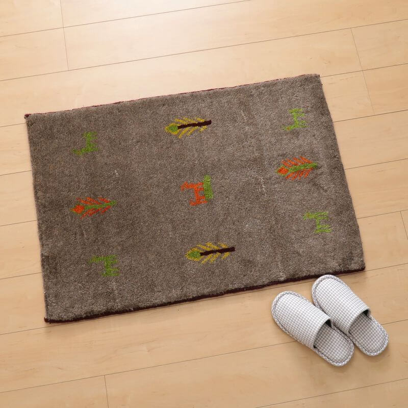 開封すぐの撮影でシワが見える写真があります。照明の違いで色合いが多少違って見えます。また、ギャッベは毛足に向きがあるので、見る方向で、明るかったり暗かったりも見えます。