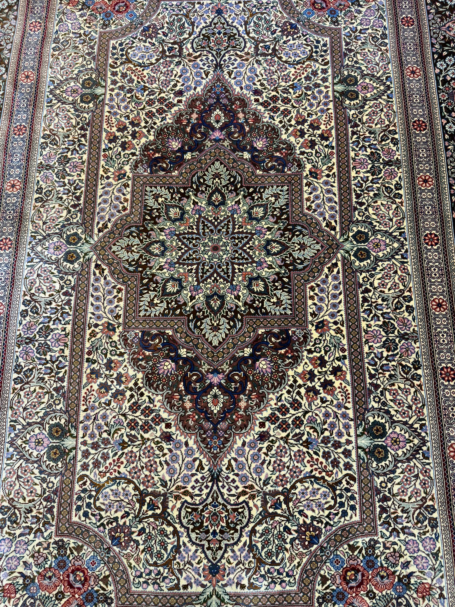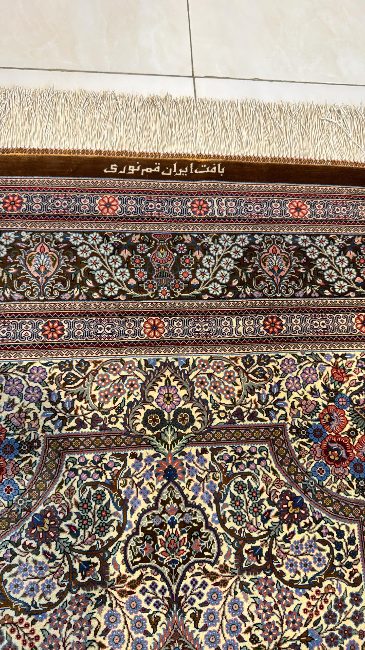 高級ペルシャ絨毯クム産シルク100% ノウリ工房 152×104cm(FN-10004)