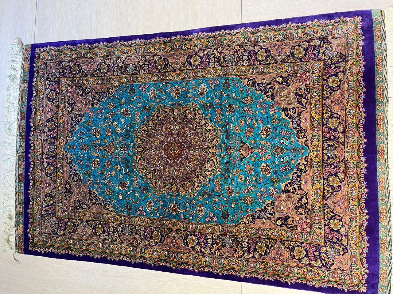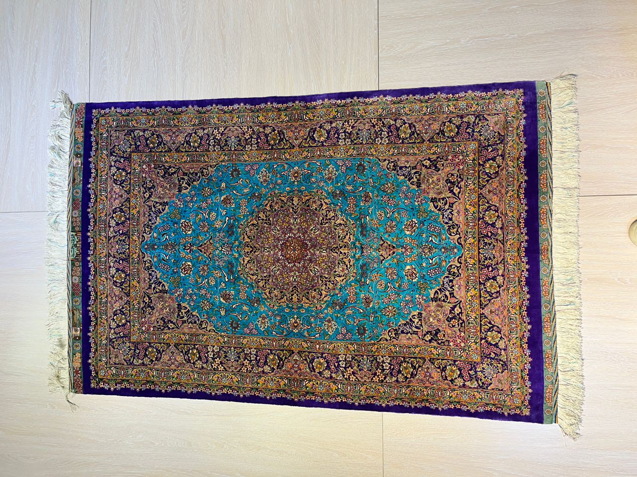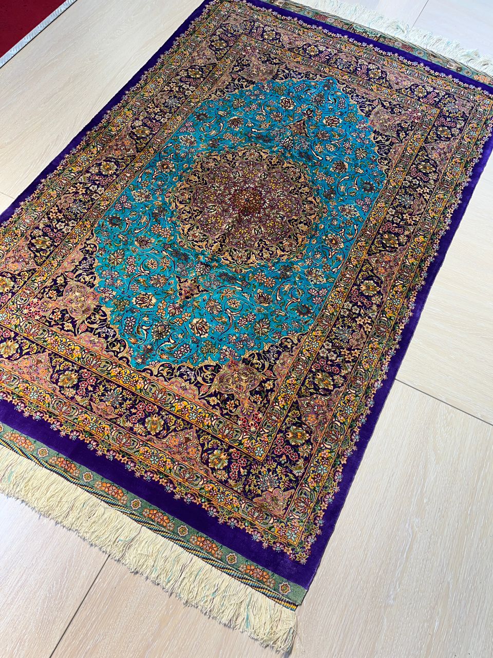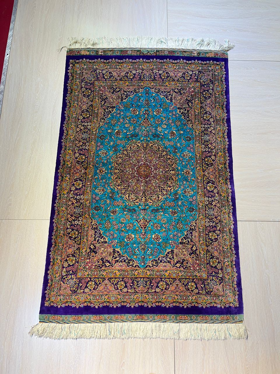 高級ペルシャ絨毯クム産シルク100% タフテ・ジャムシード 156×100cm(FN-10009)