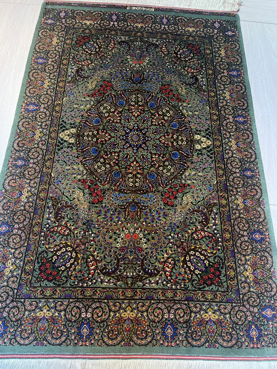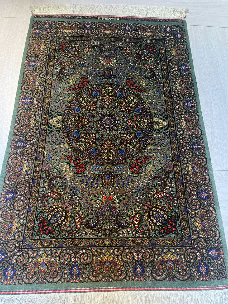 高級ペルシャ絨毯クム産シルク100% アッバス・ジャムシディ 156×100cm(FN-10010)