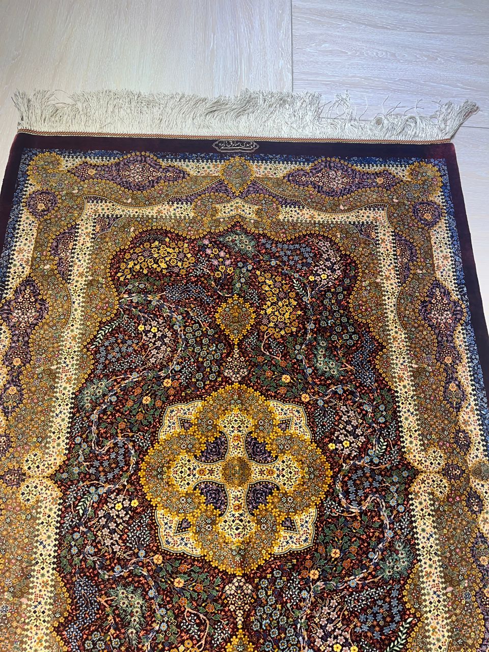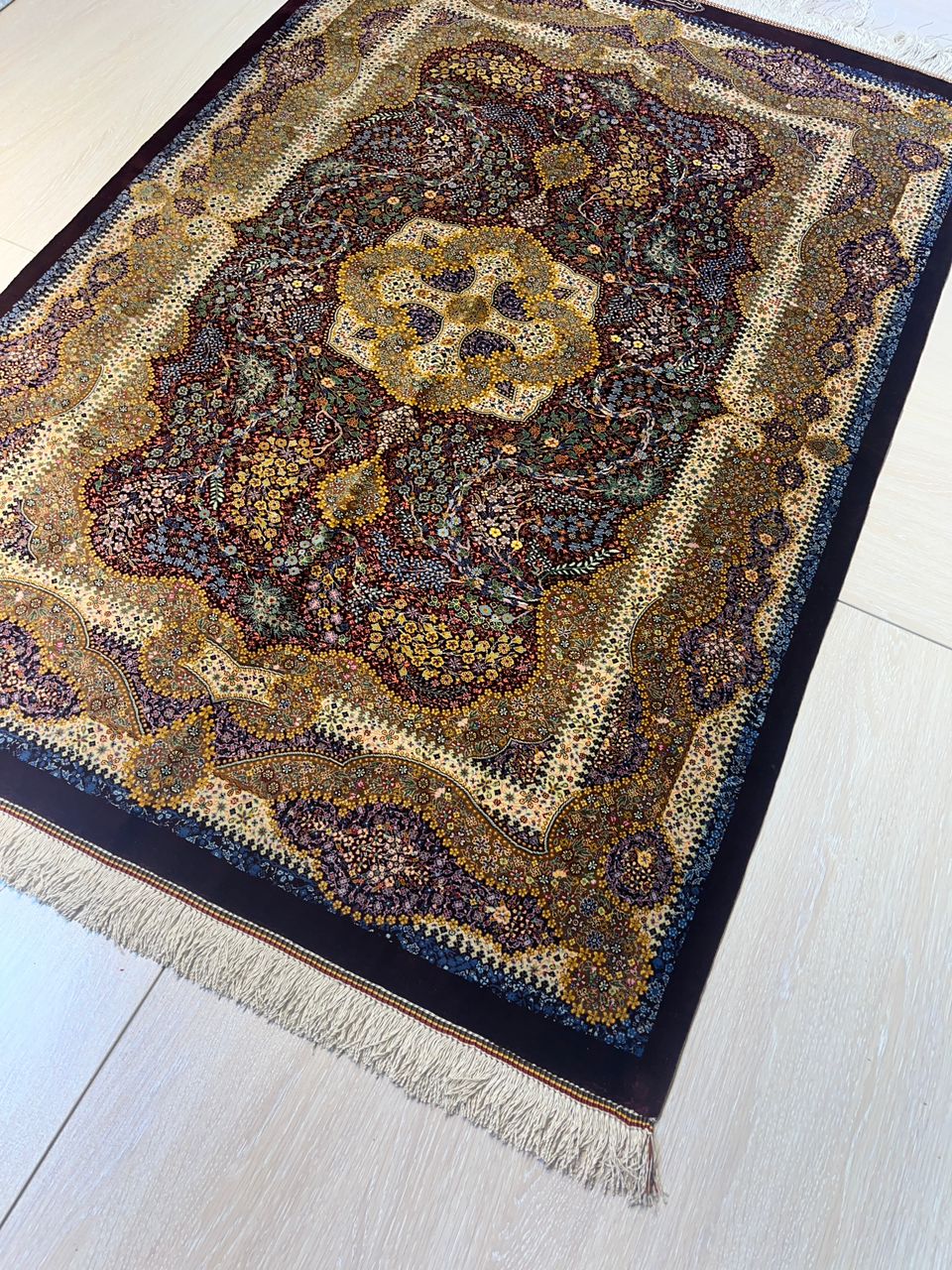 高級ペルシャ絨毯クム産シルク100% サデグザデ工房 149×104cm(FN-10012)