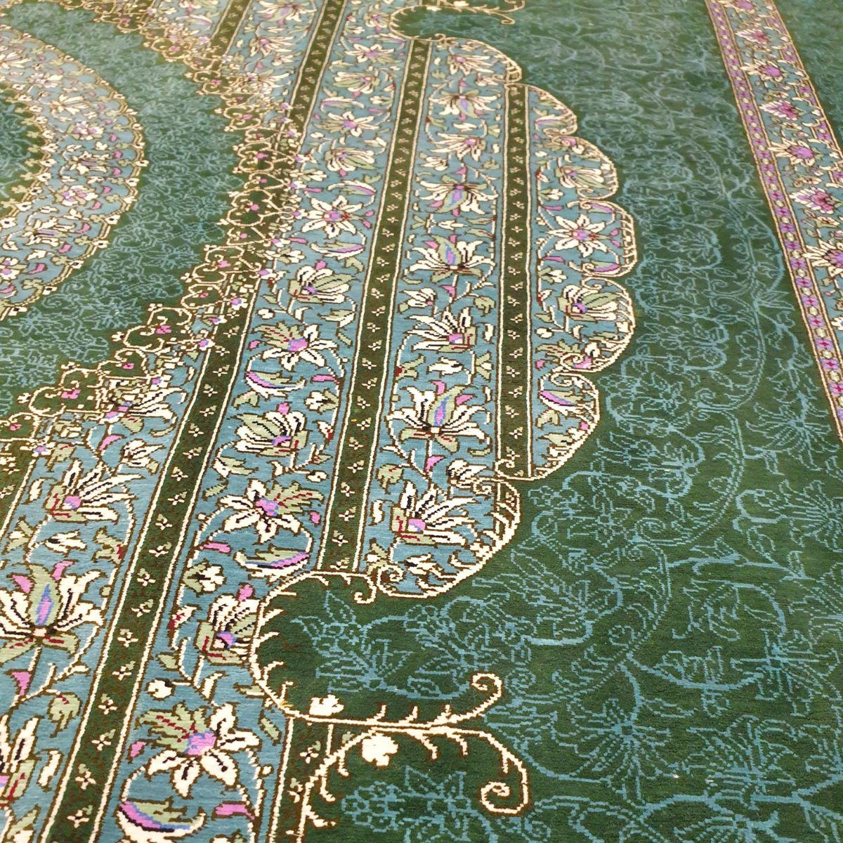 ペルシャ絨毯(シルク100%手織り)マルーフ・モサヴィ 202×138cm(FN-70377)