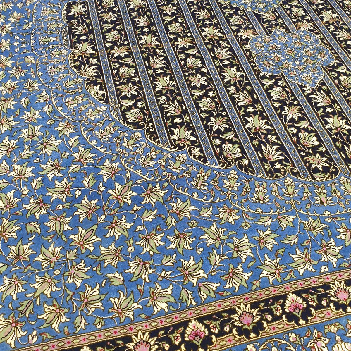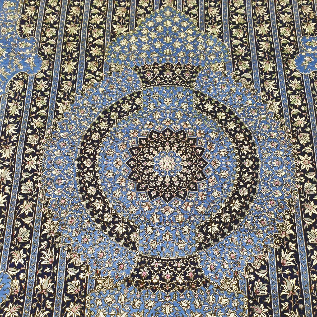 ペルシャ絨毯(シルク100%手織り)マルーフ・モサヴィ 229×141cm(FN-70379)