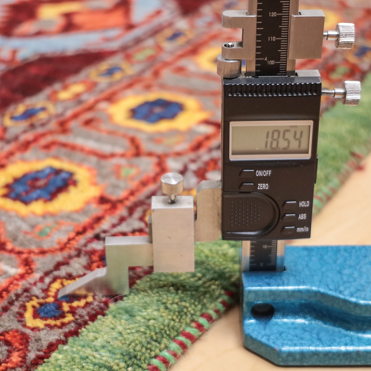 織りは、10cmあたり、およそ40から45目という普通のギャッベの数倍にもなる大変細かなルリバフ。細かく繊細なデザインで手触りはふわりと柔らか。やんわりと沈み込む踏み心地です。腕の良い選りすぐられた織り子だけが手掛ける極上の手仕事です。