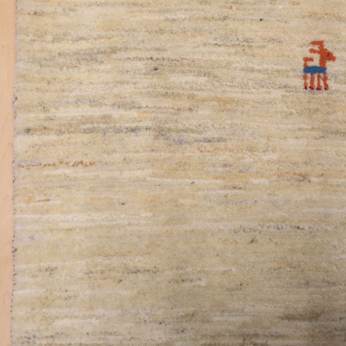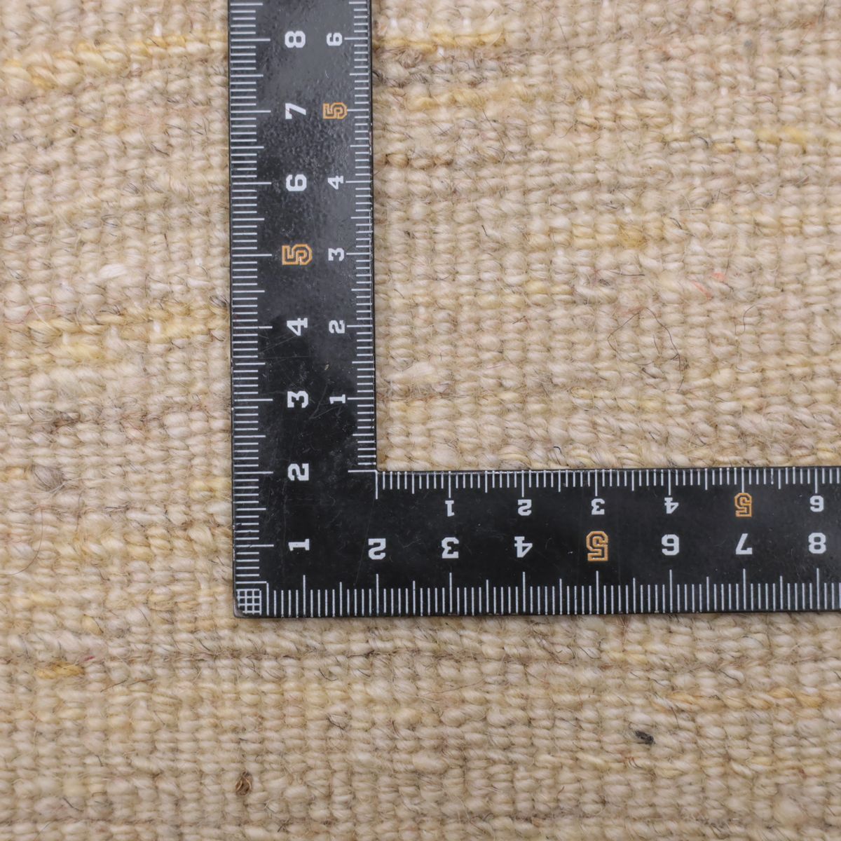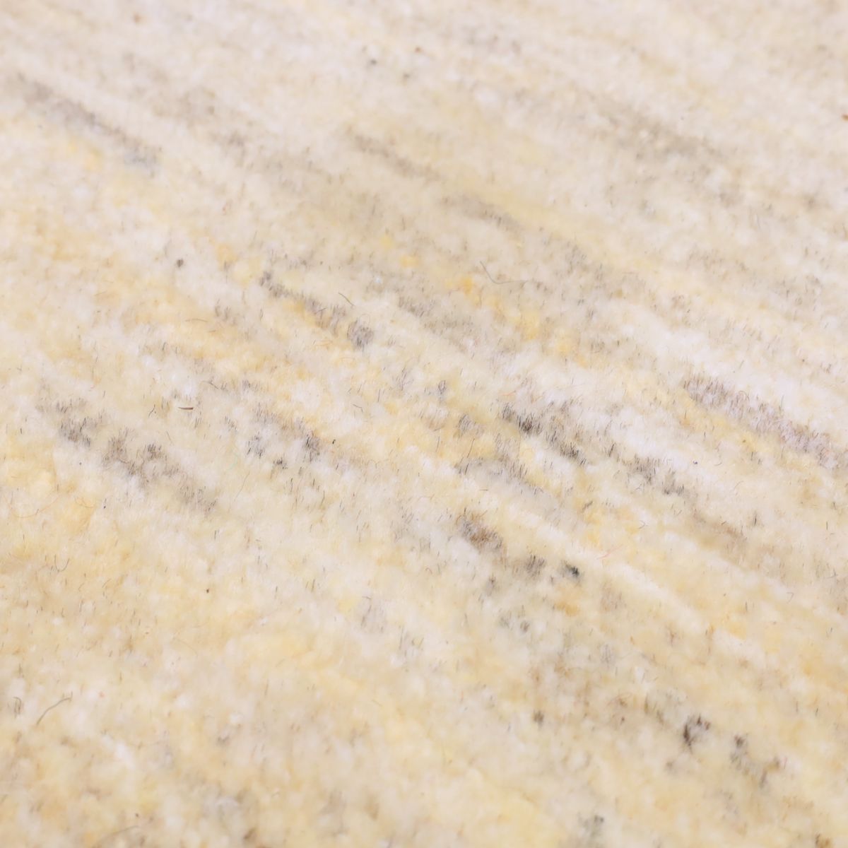 羊の毛色をそのまま活かした無染色の羊色のベースは、どんな場所にも似合うナチュラルな風合い。薄いグレーやベージュのグラデーションがやんわり入った、シンプルなデザインのギャッベです。