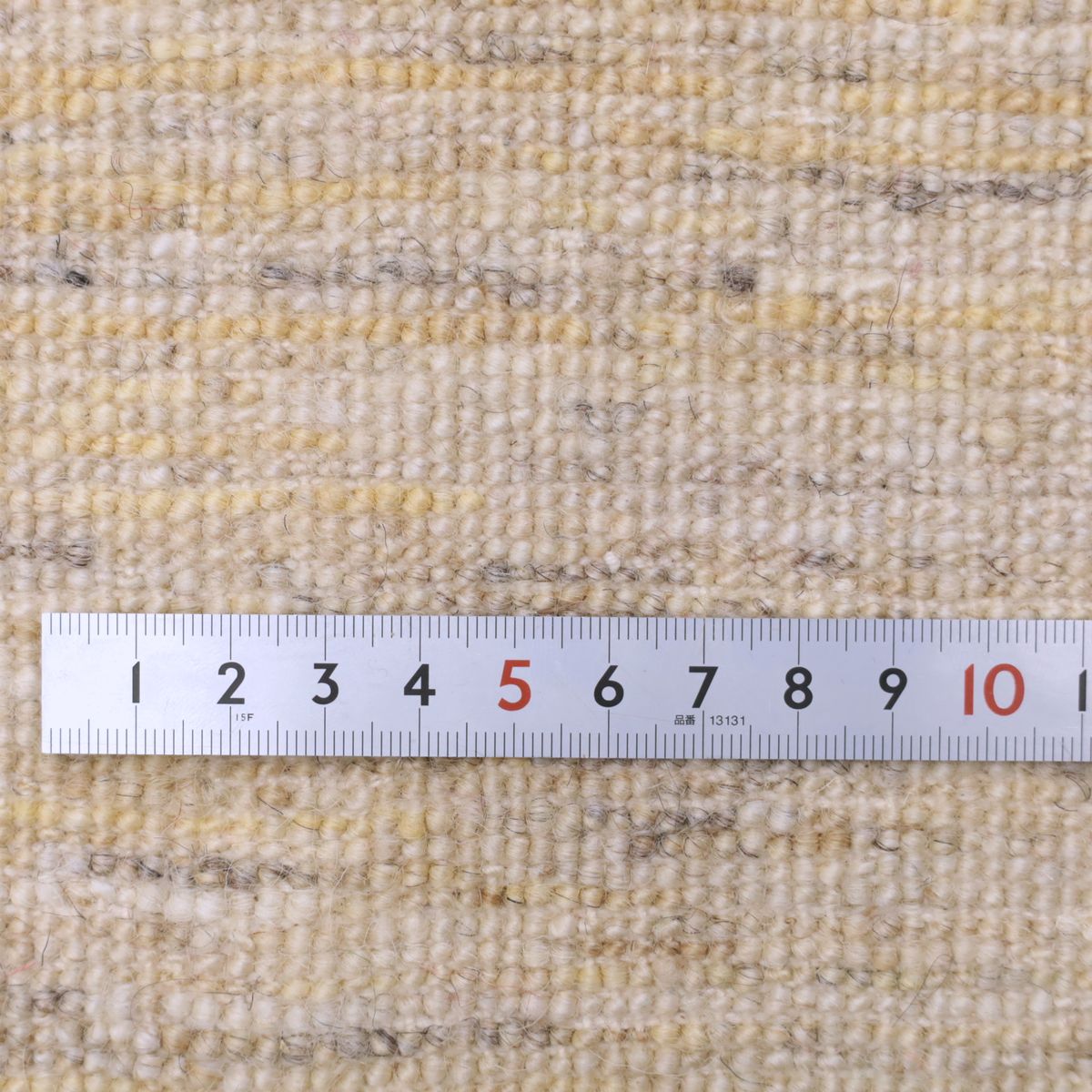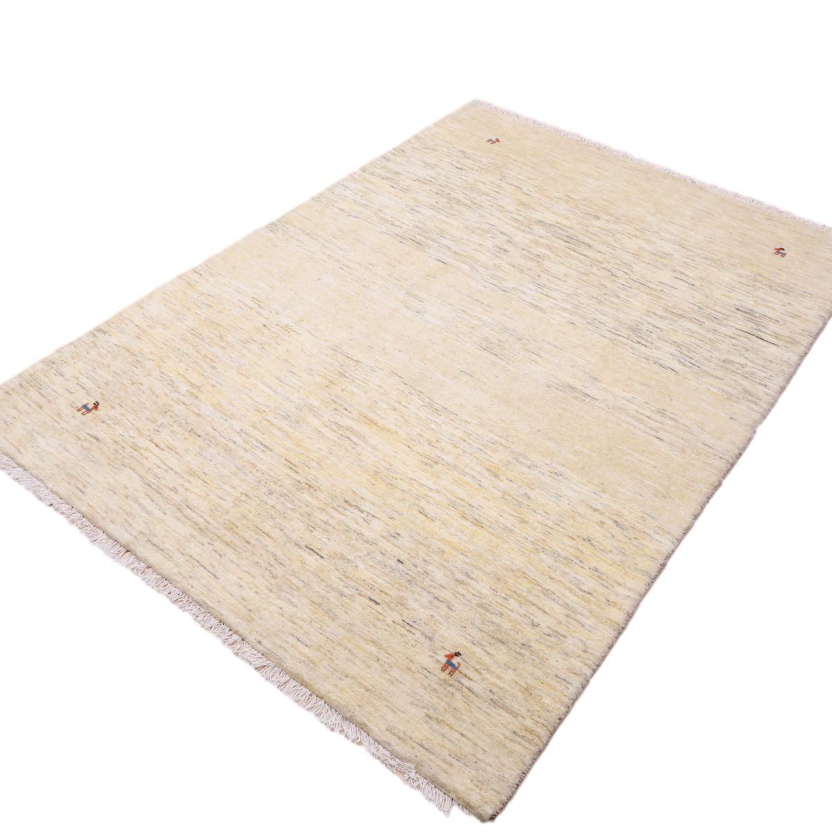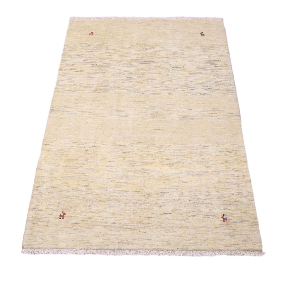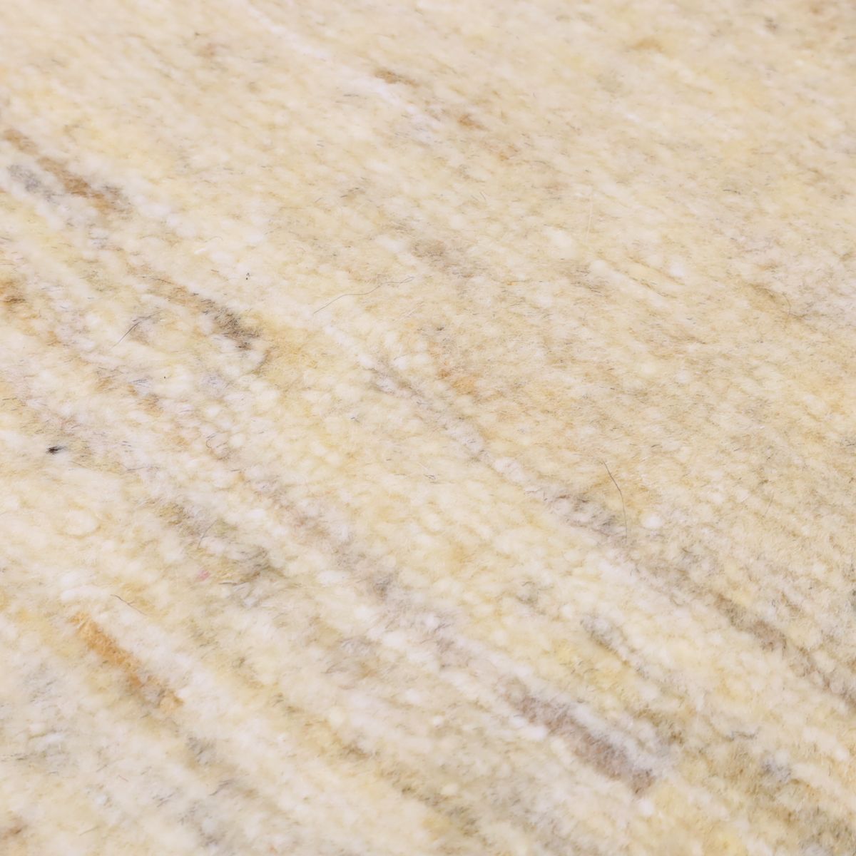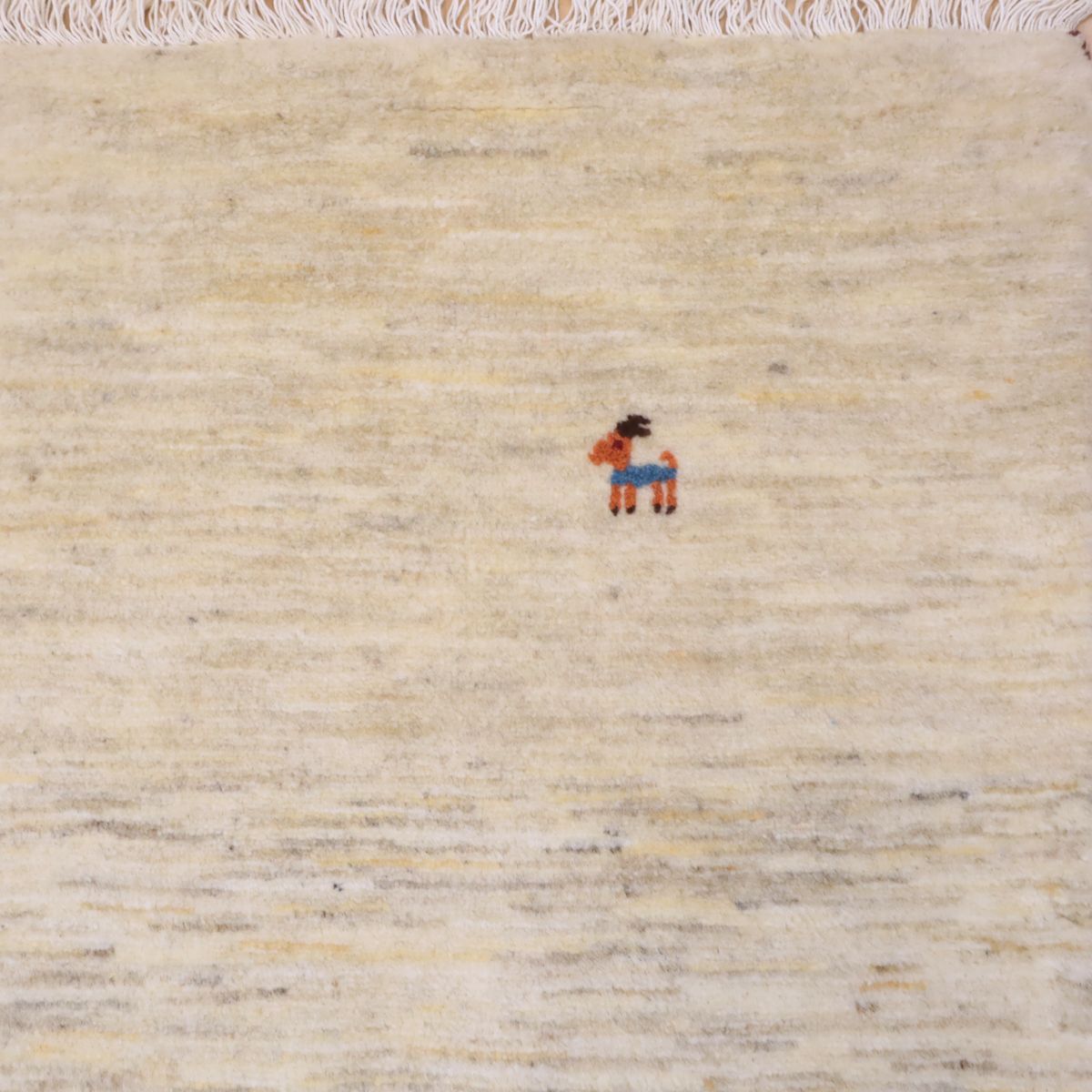 羊の毛色をそのまま活かした無染色の羊色のベースは、どんな場所にも似合うナチュラルな風合い。薄いグレーやベージュのグラデーションがやんわり入った、シンプルなデザインのギャッベです。