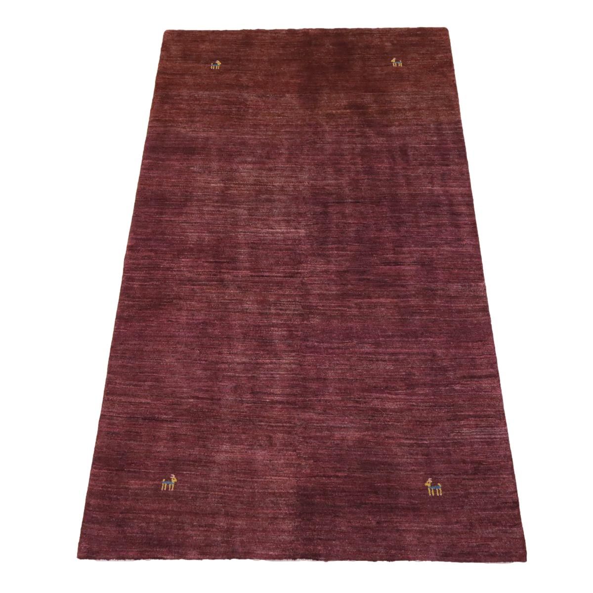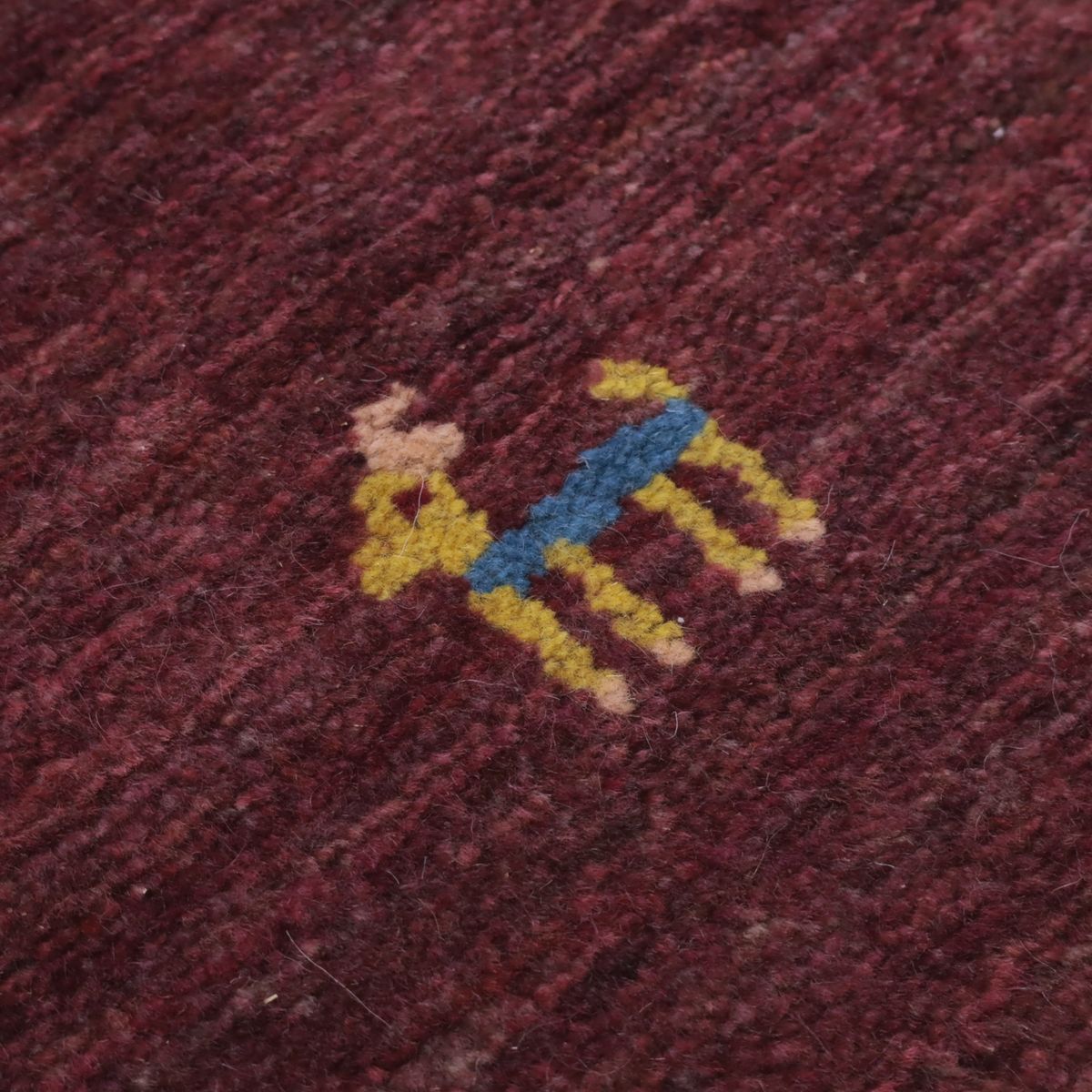 羊の毛色をそのまま活かした無染色の羊色のベースは、どんな場所にも似合うナチュラルな風合い。薄いグレーやベージュのグラデーションがやんわり入った、シンプルなデザインのギャッベです。