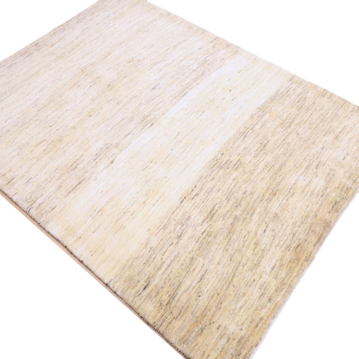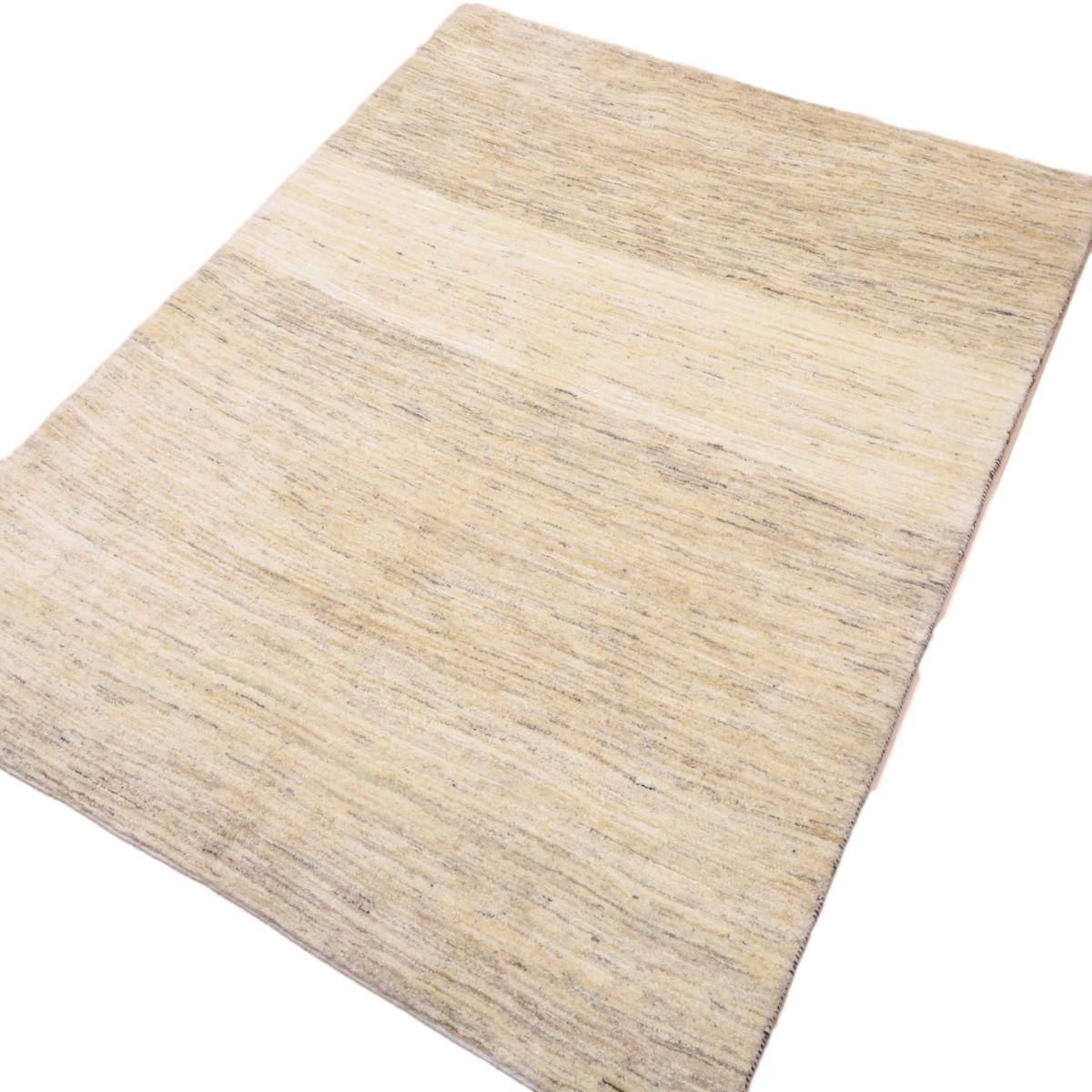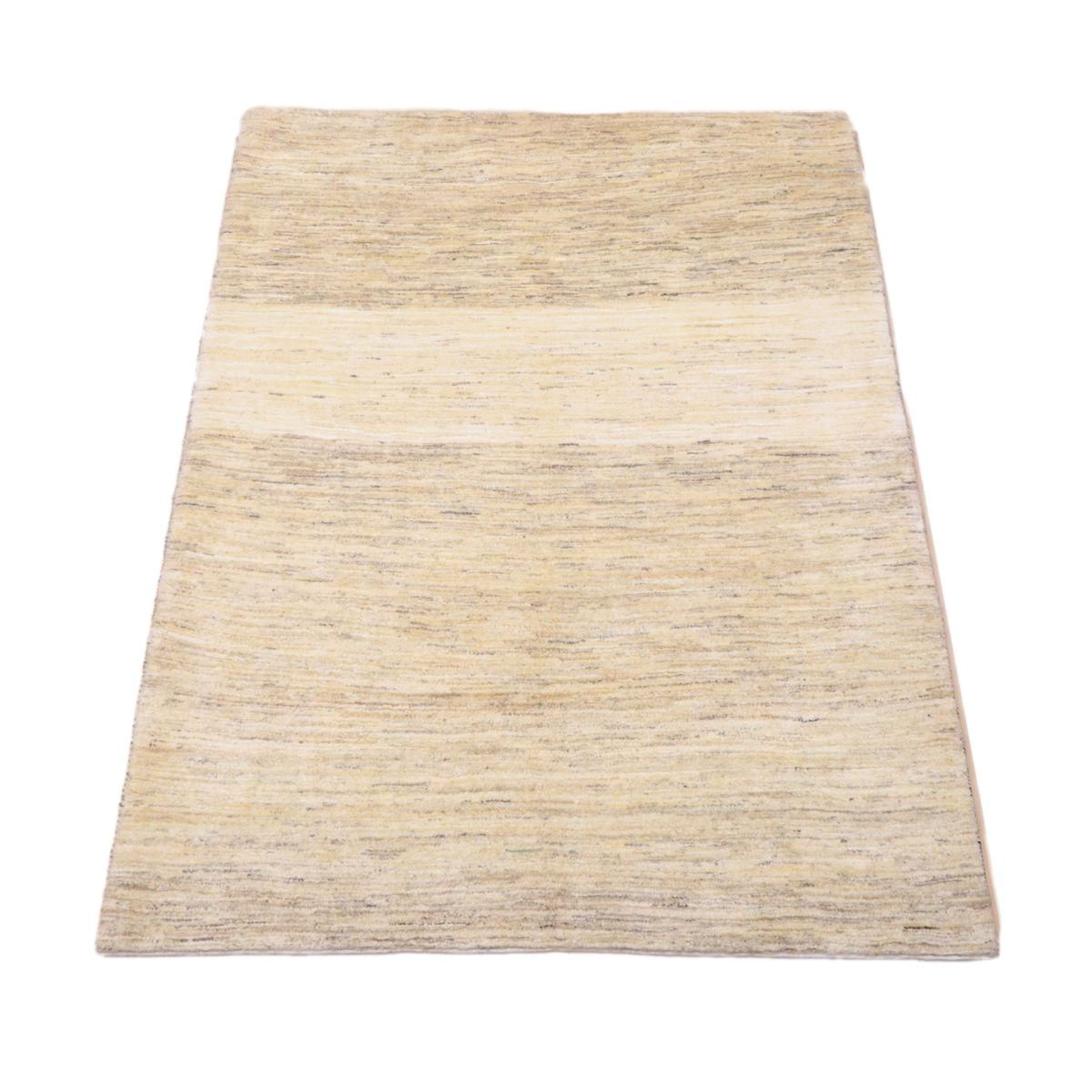 羊の毛色をそのまま活かした無染色の羊色のベースは、どんな場所にも似合うナチュラルな風合い。薄いグレーやベージュのグラデーションがやんわり入った、シンプルなデザインのギャッベです。