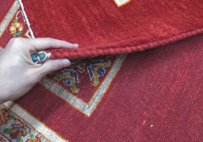 織りは、10cmあたり、およそ40から45目という普通のギャッベの数倍にもなる大変細かなルリバフ。抜け毛が少なく、手触りはふわりと柔らか。踏んだ時やんわりと沈み込む踏み心地です。腕の良い選りすぐられた織り子だけが手掛ける極上の手仕事です。