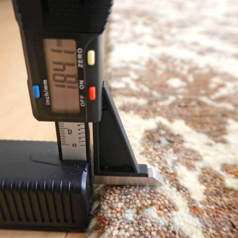 織りは、10cmあたり、およそ40から45目という普通のギャッベの数倍にもなる大変細かなルリバフ。抜け毛が少なく、手触りはふわりと柔らか。踏んだ時やんわりと沈み込む踏み心地です。腕の良い選りすぐられた織り子だけが手掛ける極上の手仕事です。