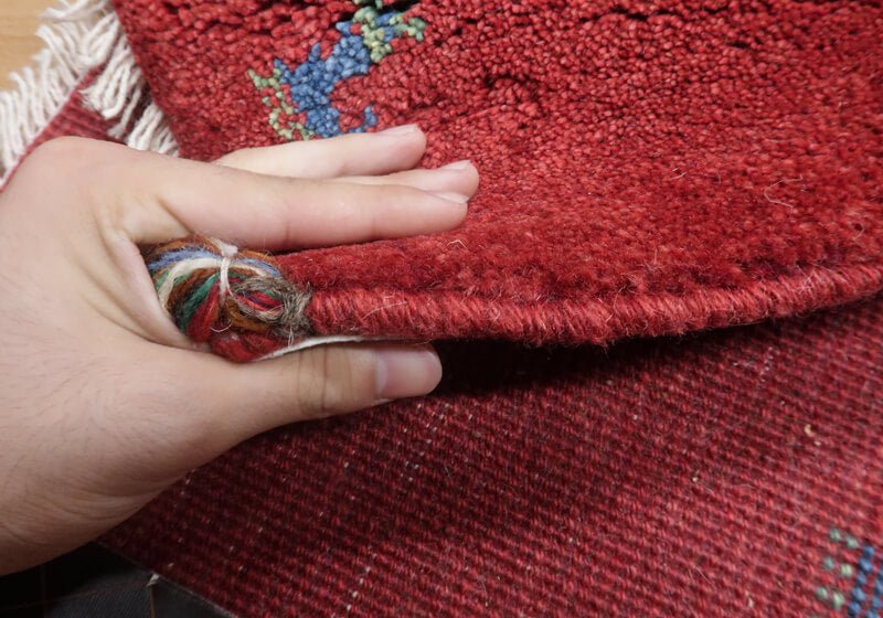開封すぐの撮影でシワが見える写真があります。照明の違いで色合いが多少違って見えます。また、ギャッベは毛足に向きがあるので、見る方向で、明るかったり暗かったりも見えます。