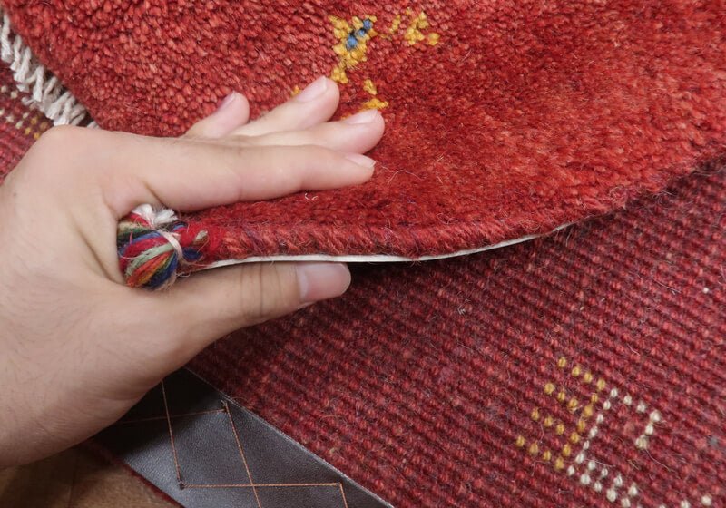 開封すぐの撮影でシワが見える写真があります。照明の違いで色合いが多少違って見えます。また、ギャッベは毛足に向きがあるので、見る方向で、明るかったり暗かったりも見えます。
