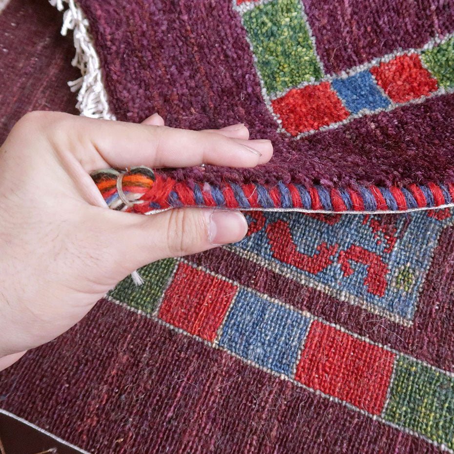織りは、10cmあたり、およそ40から45目という普通のギャッベの数倍にもなる大変細かなルリバフ。抜け毛が少なく、手触りはふわりと柔らか。踏んだ時やんわりと沈み込む踏み心地です。腕の良い選りすぐられた織り子だけが手掛ける極上の手仕事です。